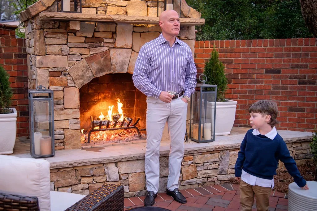 The whole family was able to make it to the party which was actually on Laurenβs birthday! All three daughters and their husbands, all five grandchildren, friends who have been part of our lives for years. We had a fire going in the outdoor fireplace and the evening was perfect...cool enough to feel like spring and warm enough to be outside. I love it when weβre all together and one of the best partsβ¦we were able to get a Christmas card shot with everyone!