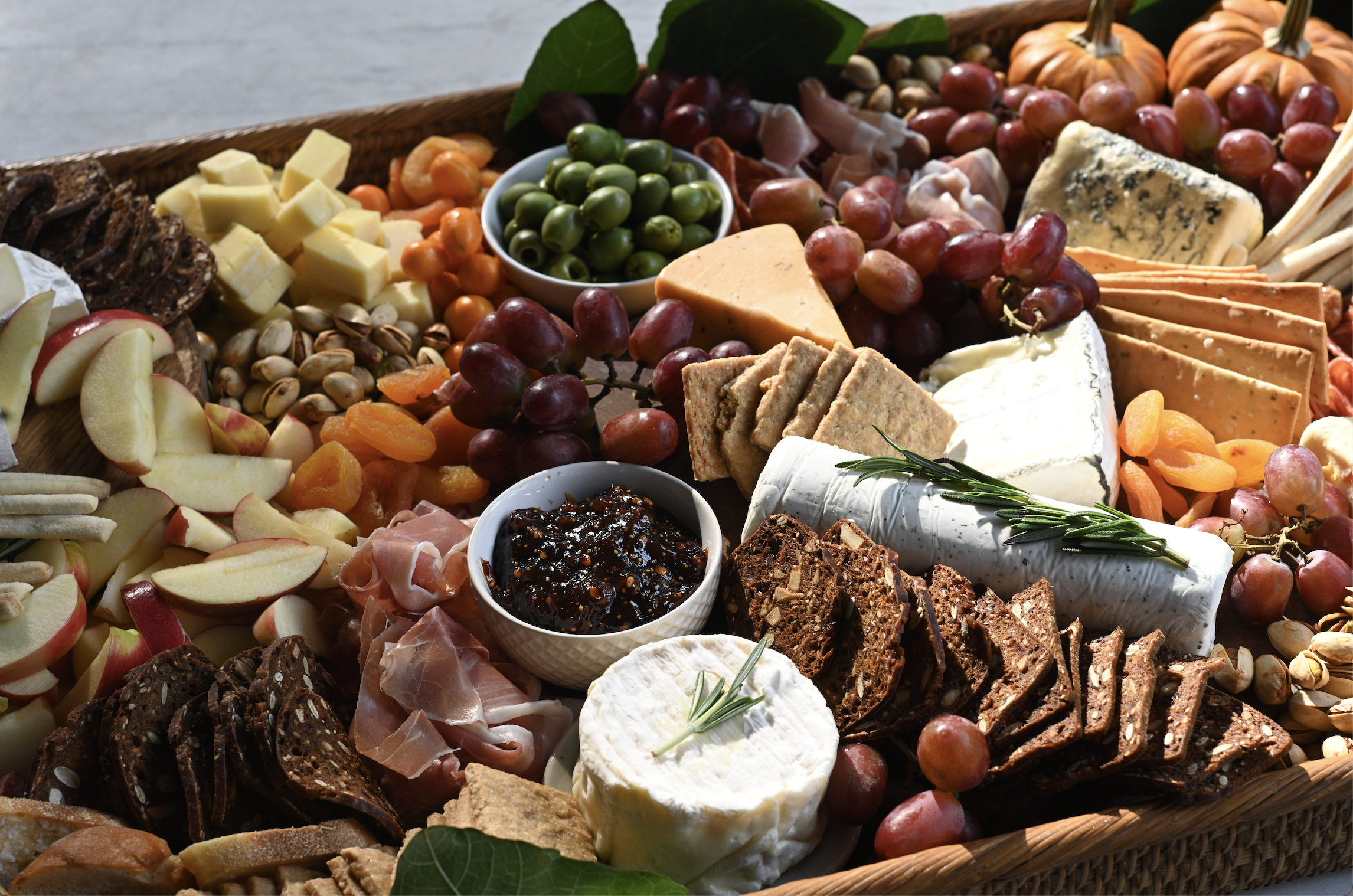 Putting together a charcuterie board is one of my favorite ways to entertain…it’s easy, elegant, and always a showstopper at any fall gathering. This particular board was a labor of love that I made to serve about 50 people! I filled it with an assortment of my favorite cheeses and cured meats, along with grapes, olives, dried fruit, nuts, and crackers and more to balance the flavors and textures.