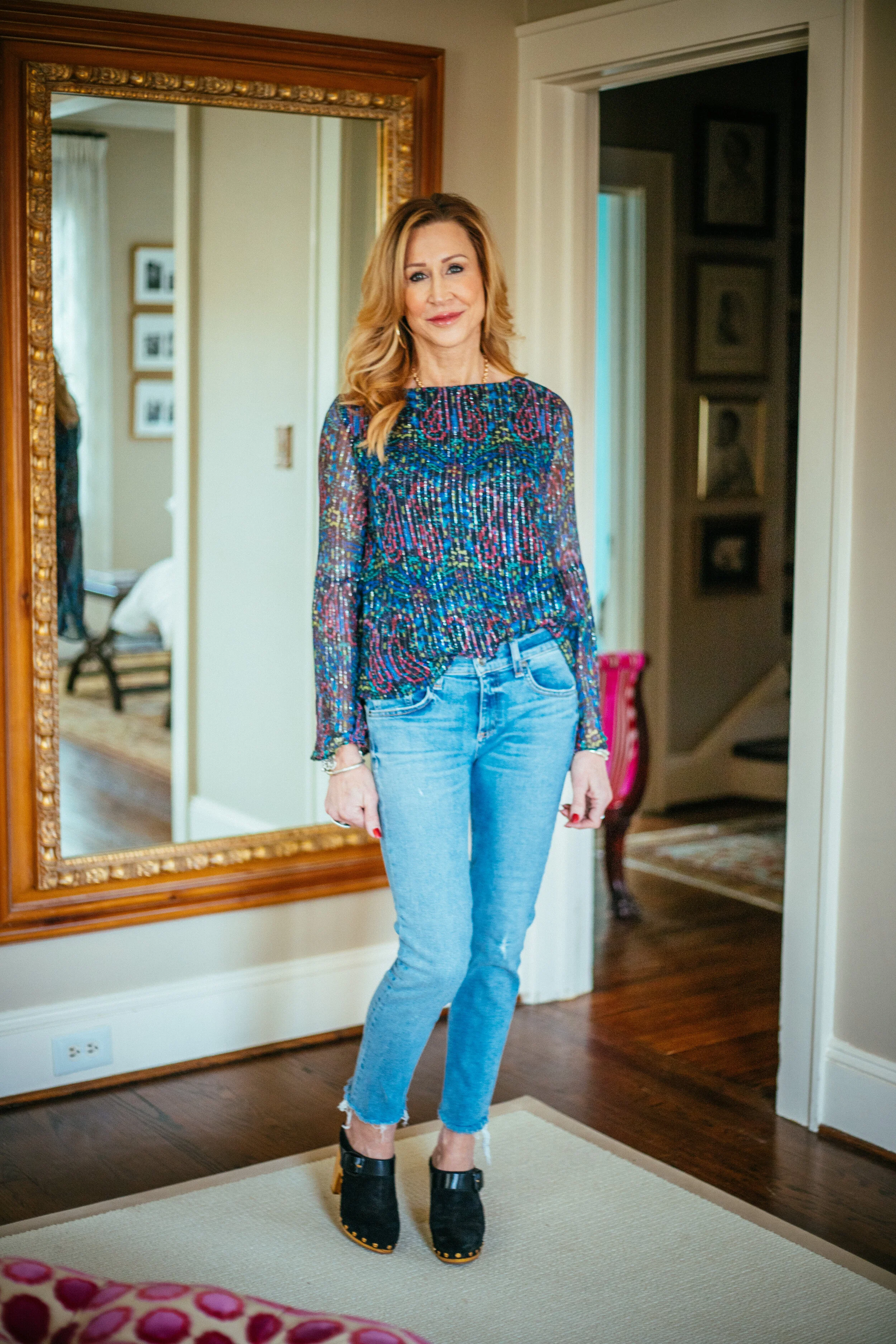 You’ll love the amazing selection of pieces for any occasion to choose from from Armoire! For my first order, I chose 6 pieces, including a faux fur vest, a floral blouse (pictured below), jeans from Rag & Bone, and a beautiful Nicole Miller blouse with metallic thread (worn below with the jeans) . I have two other pieces that will be featured here soon! Click here to get 60% off your first month!