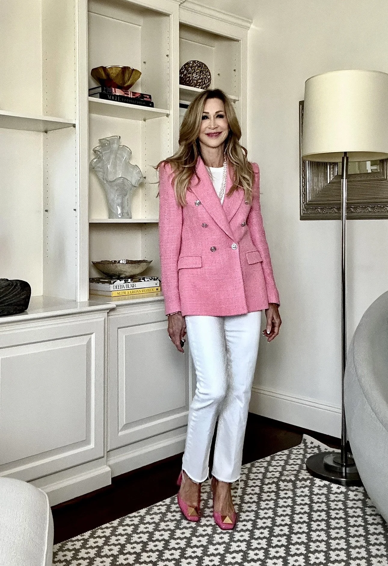 My pink blazer is from Zara and several years old! I pull it out every spring and love that it goes perfectly with the pink shoes!