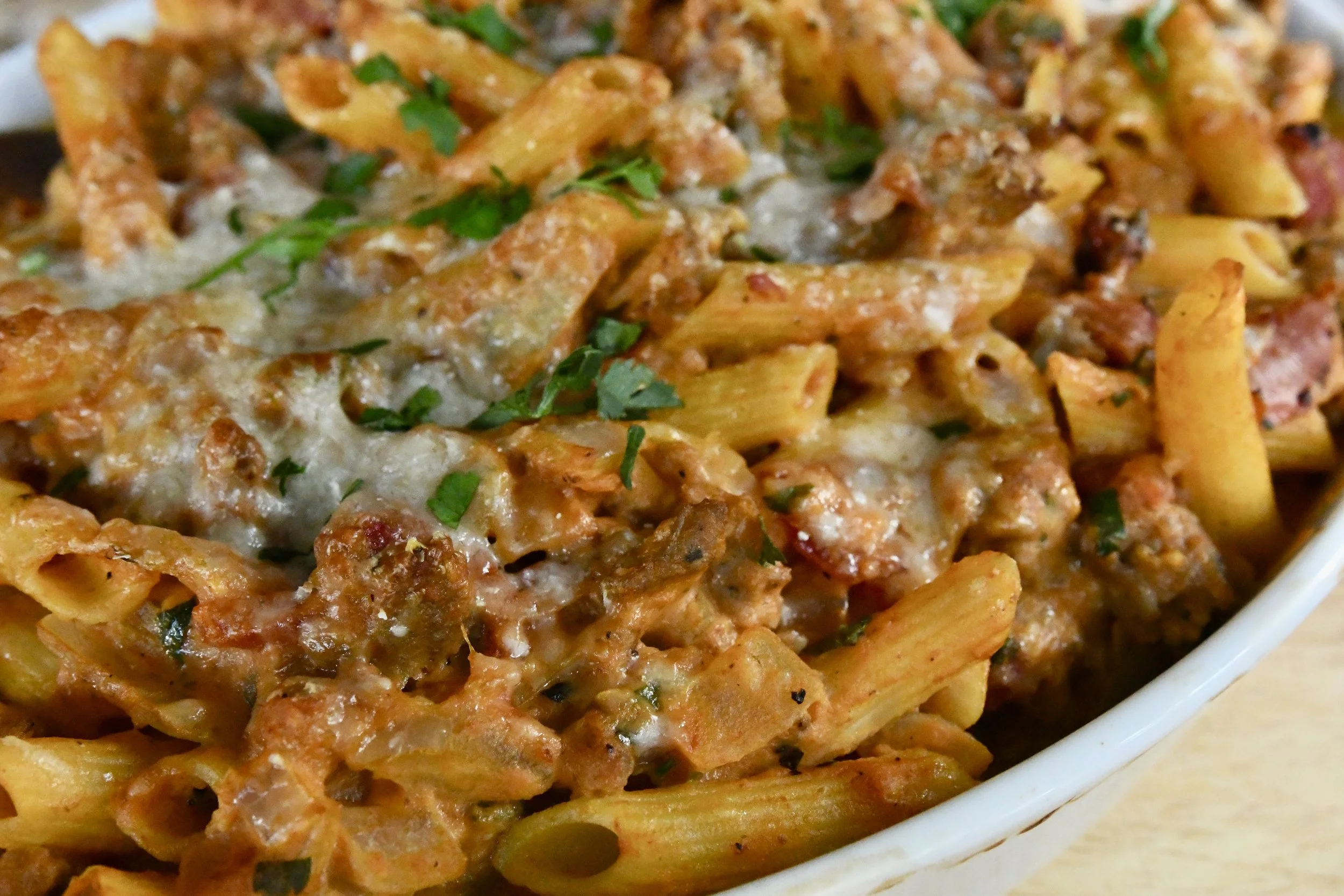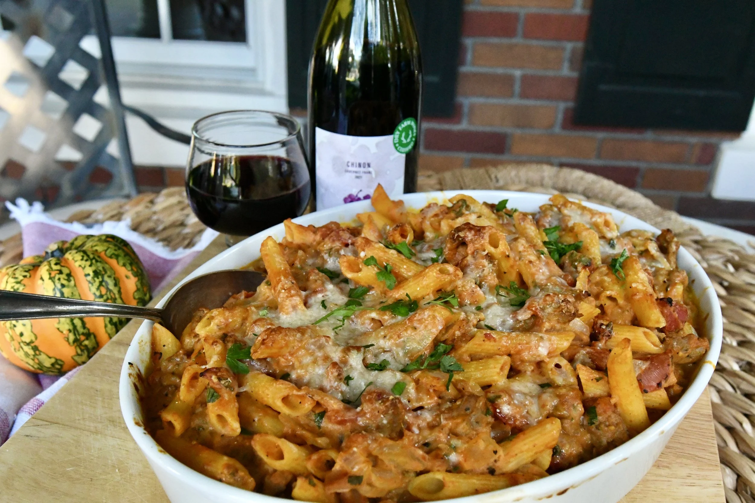 Baked Ziti with Italian Sausage & Pumpkin Tomato Sauce - Your New Fall Tradition