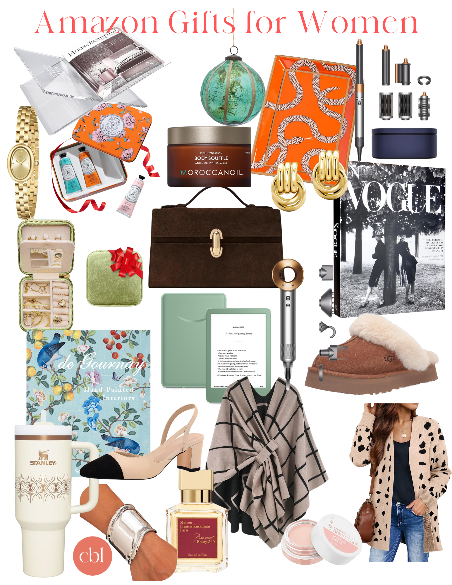 //Acrylic Book Stand//Holiday Ornament//Jonathan Adler Tray//Dyson Air Wrap//Gold Watch//La Chatelaine Hand Cream Trio//Moroccan Oil Body Soufflé//Gold Earrings//Vogue Book//De Gournay Book//Kindle//Dyson Hair Dryer//Ugg Slippers//Stanley Cup//Slingback Shoes//Sweater Wrap//Leopard Cardigan//Silver Bracelet//Baccarat Rouge Parfum//Under Eye Brightner//