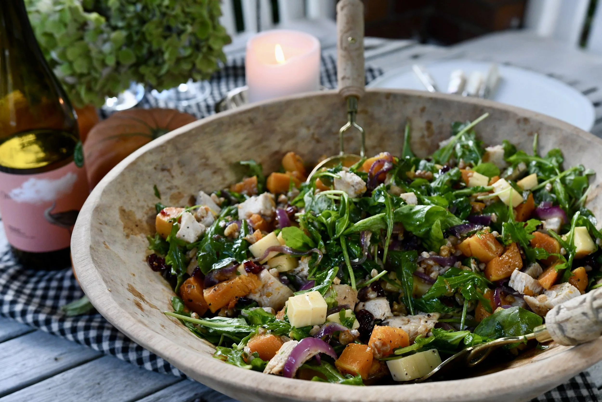 Fall In a Bowl - Butternut Squash and Arugula Salad with Roasted Chicken