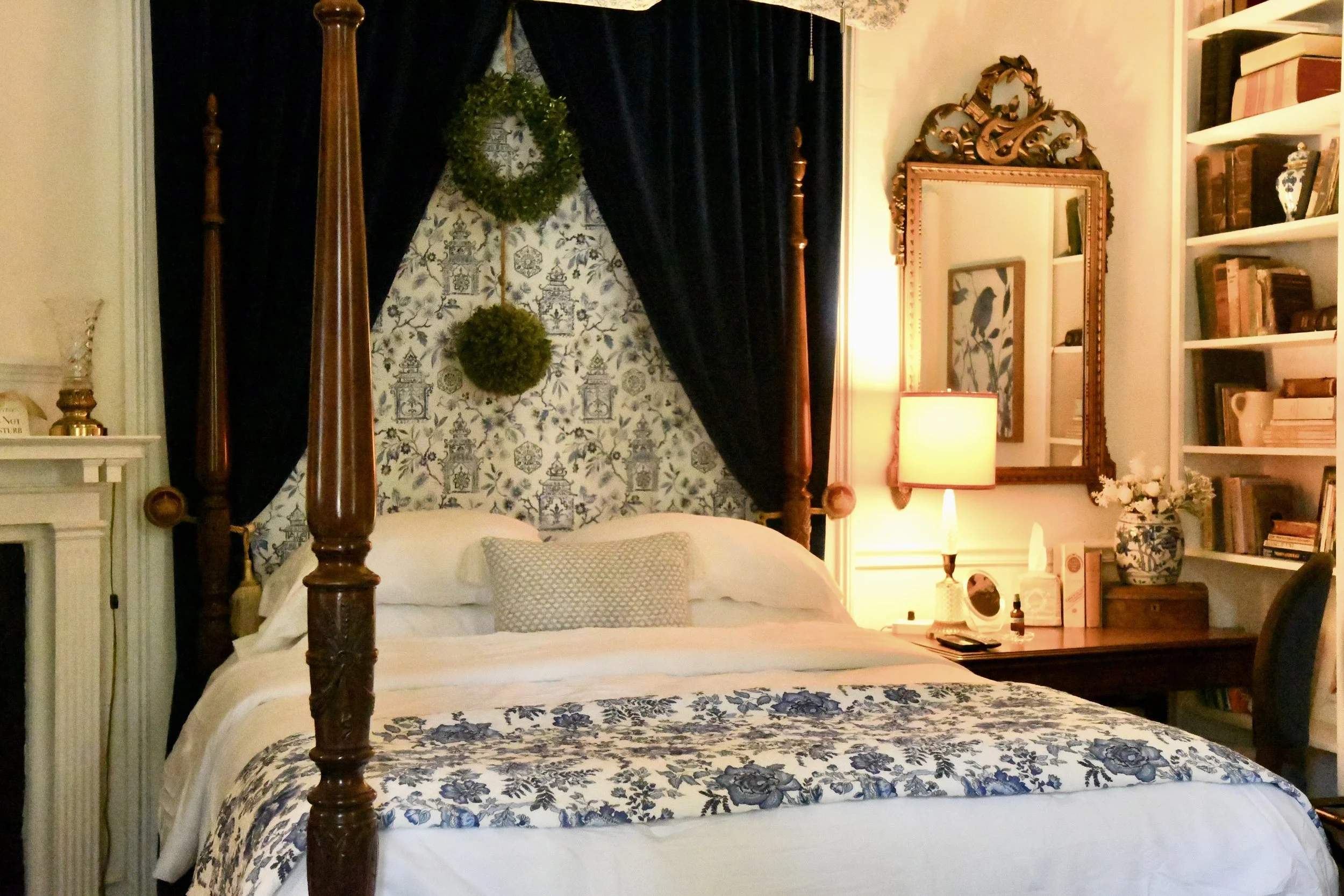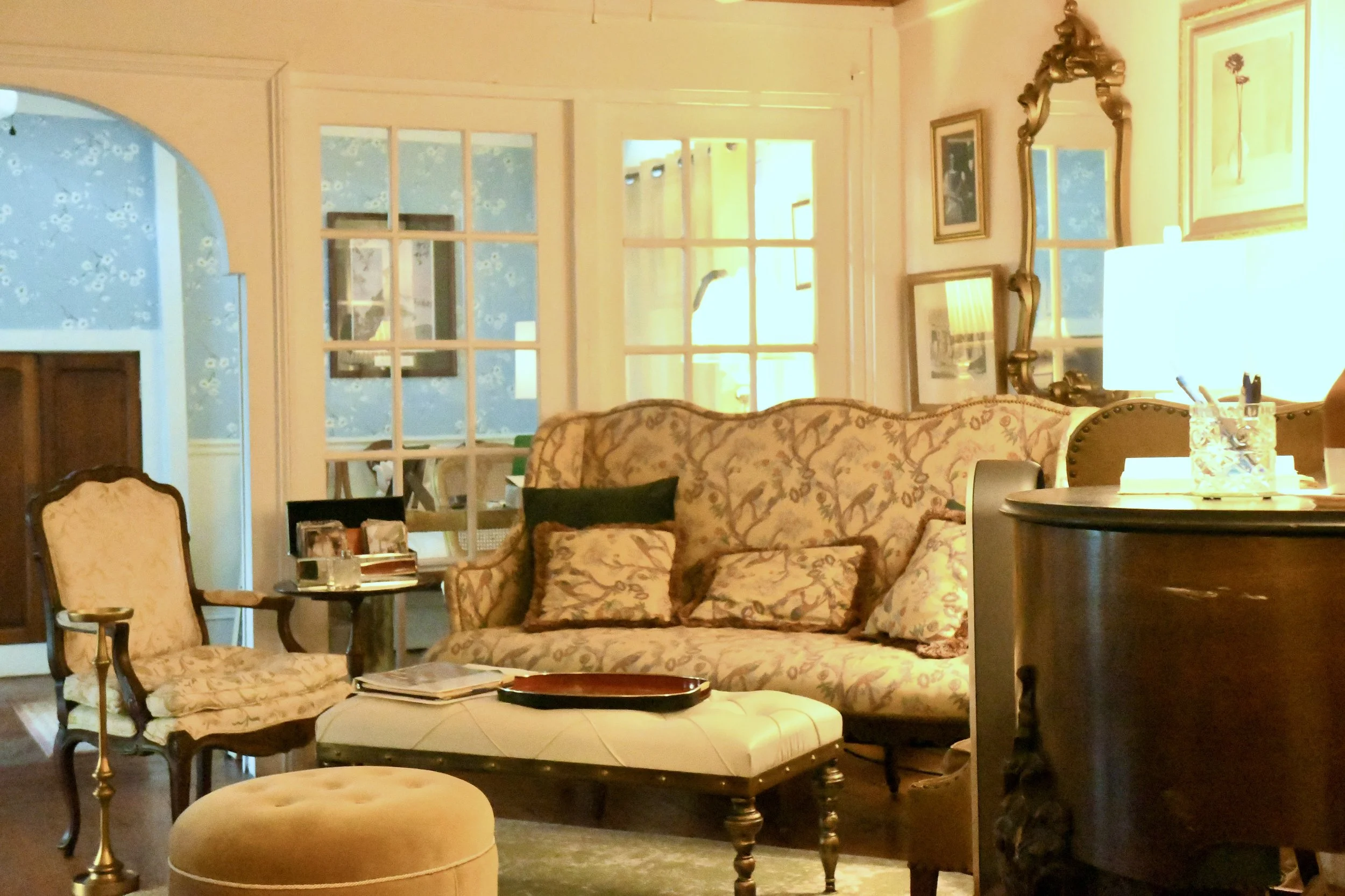 This beautiful, ornate chandelier hangs in the gracious entrance to the inn and suits the house as it had been there all along! Great care has been taken to furnish the house with period furniture that maintains the integrity of the interiors.
