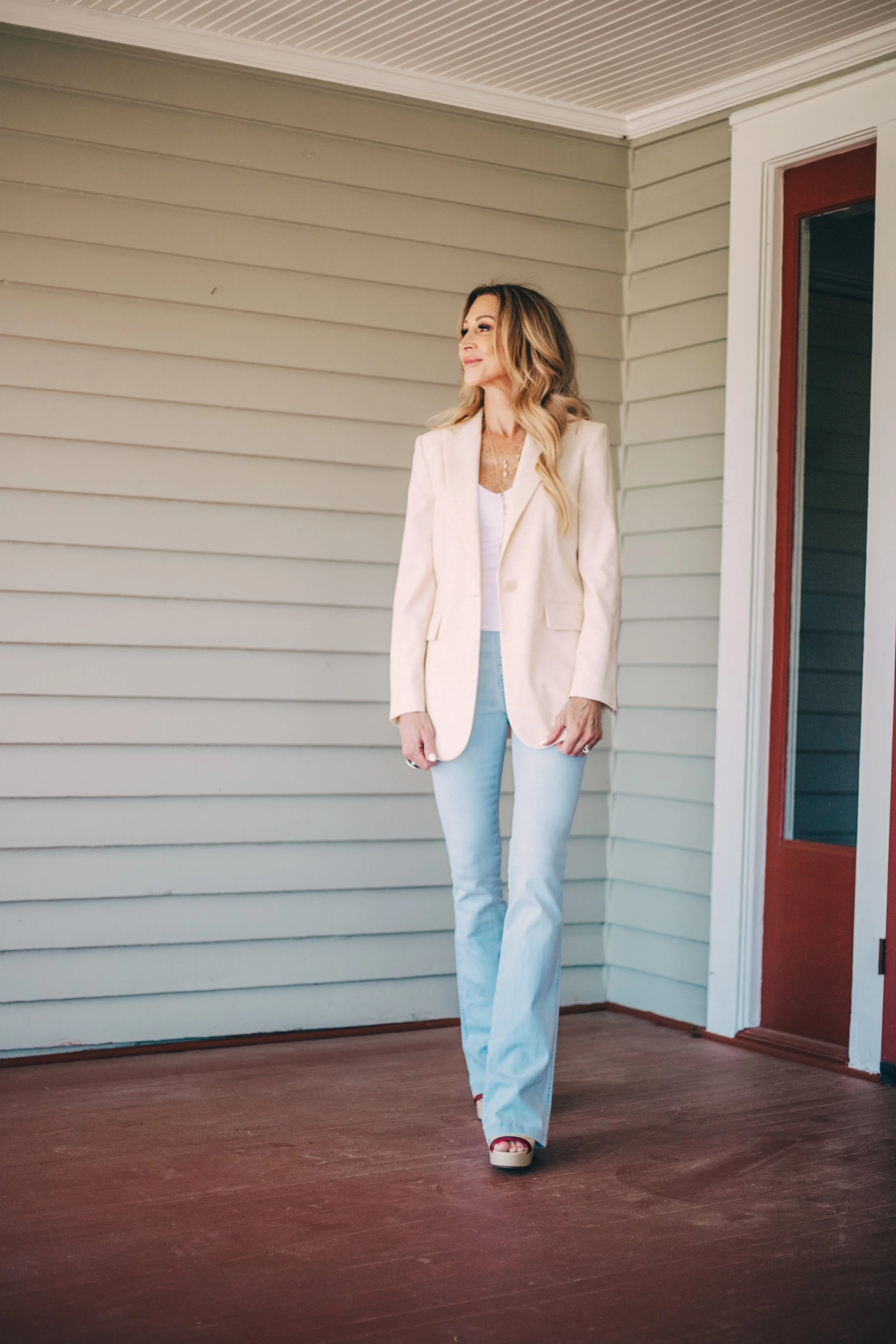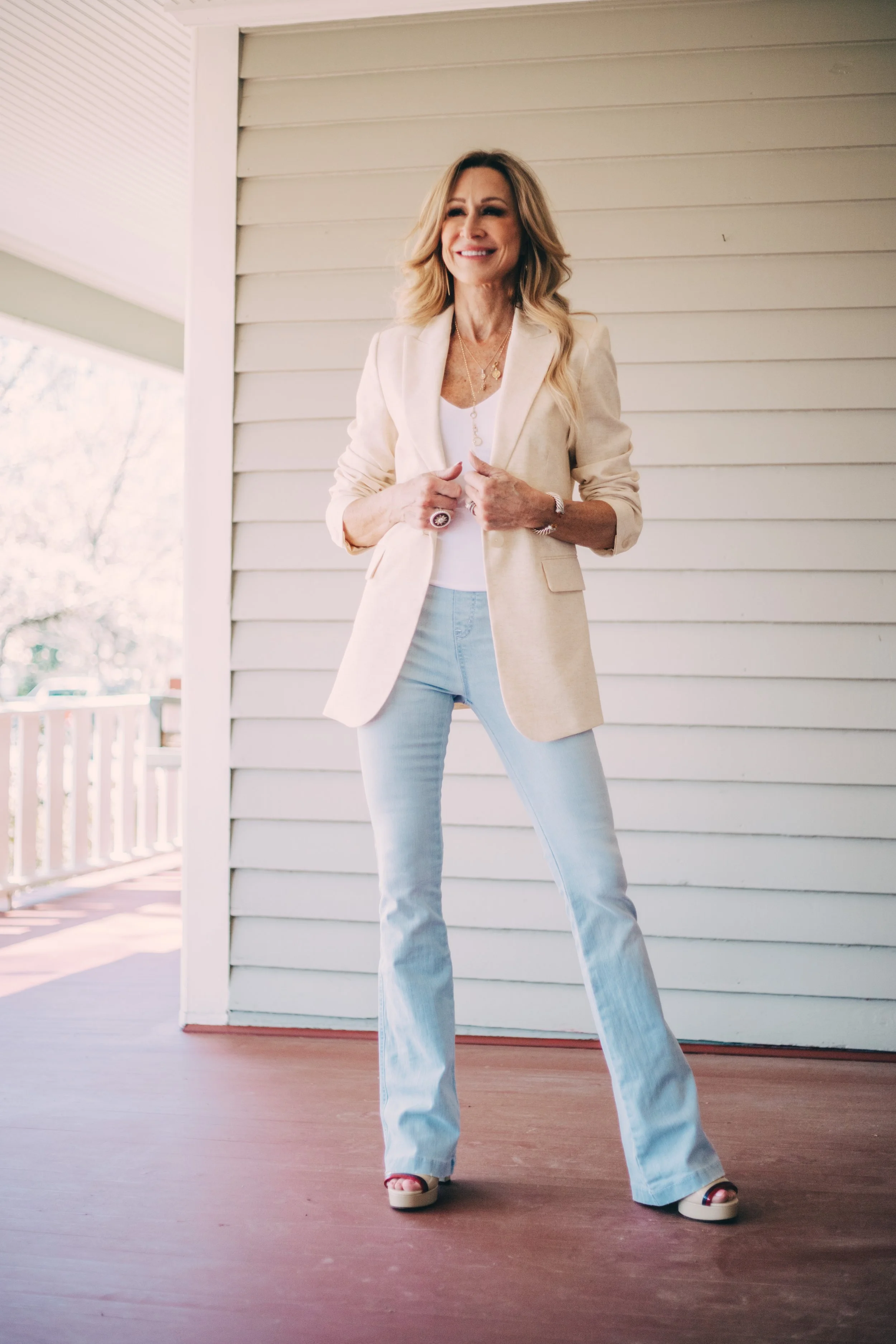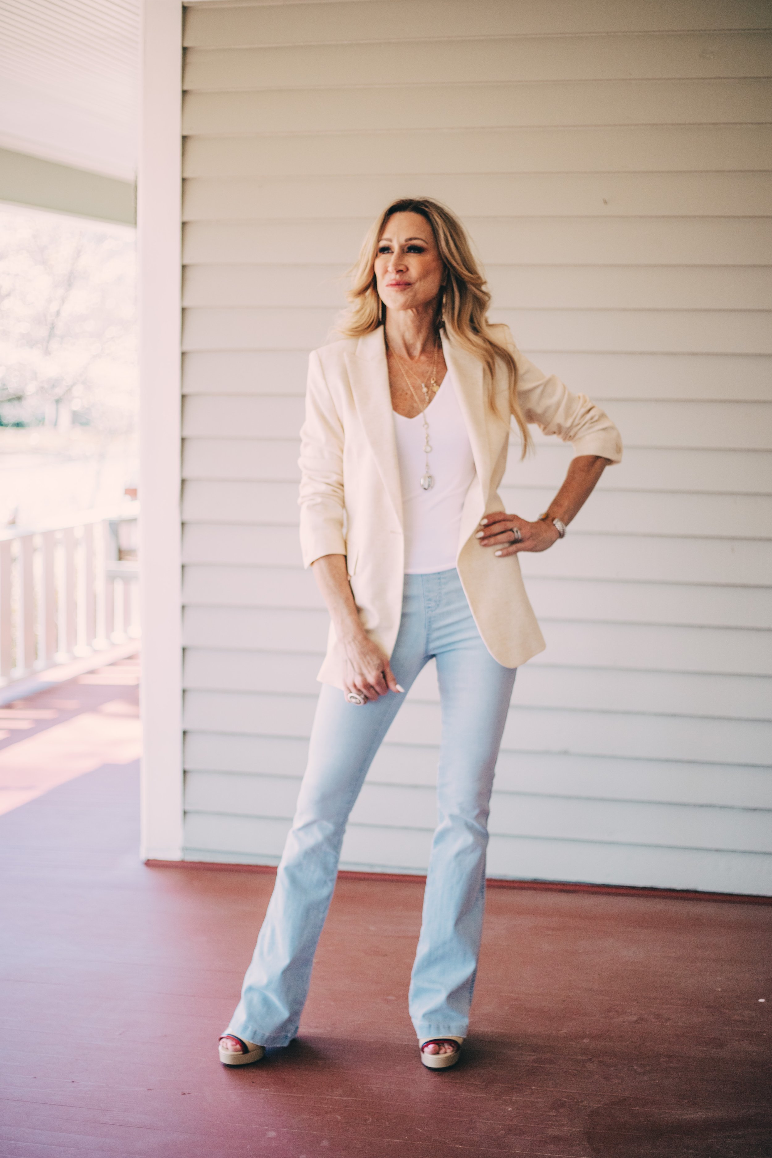 Andβ¦I want to share some of the best and most flattering jeans Iβve found lately and they are, of course, by Spanx! These jeans come in a light wash as Iβm wearing and also in white! They really do fit like a dream, they hold their shape and they are so comfortable! Iβve linked everything below and I promise, you need these jeans in your ife!