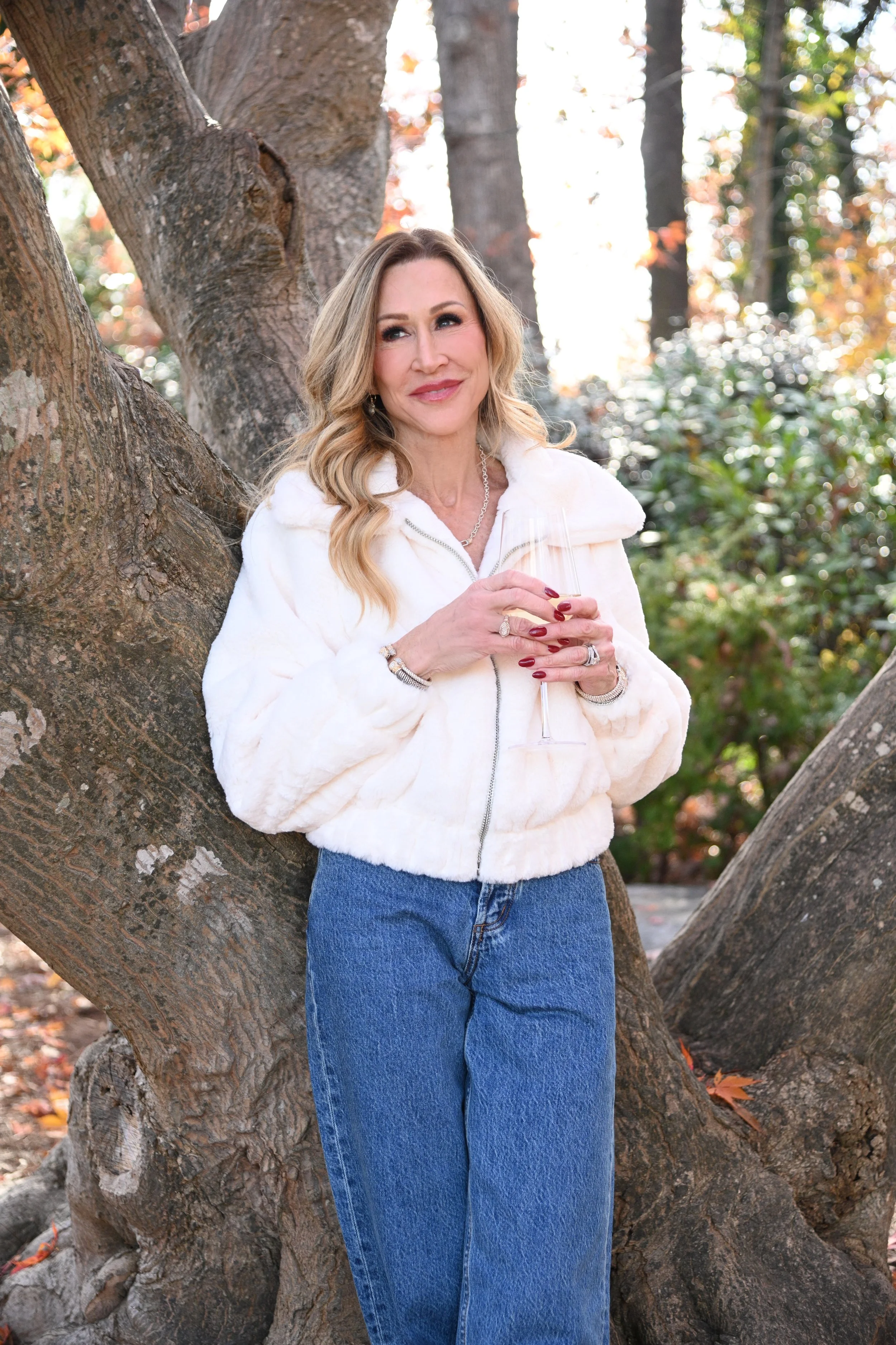 As the leaves turn, the colors go through the most incredible color transformations, making the tree look almost illuminated. We’ve even been told it’s unique enough that we should consider insuring it. Its presence adds so much character to our home! It’s a perfect climbing tree for our grandchildren and it felt like an ideal setting for these photos featuring the cutest and very affordable faux fur jacket from Social Threads.