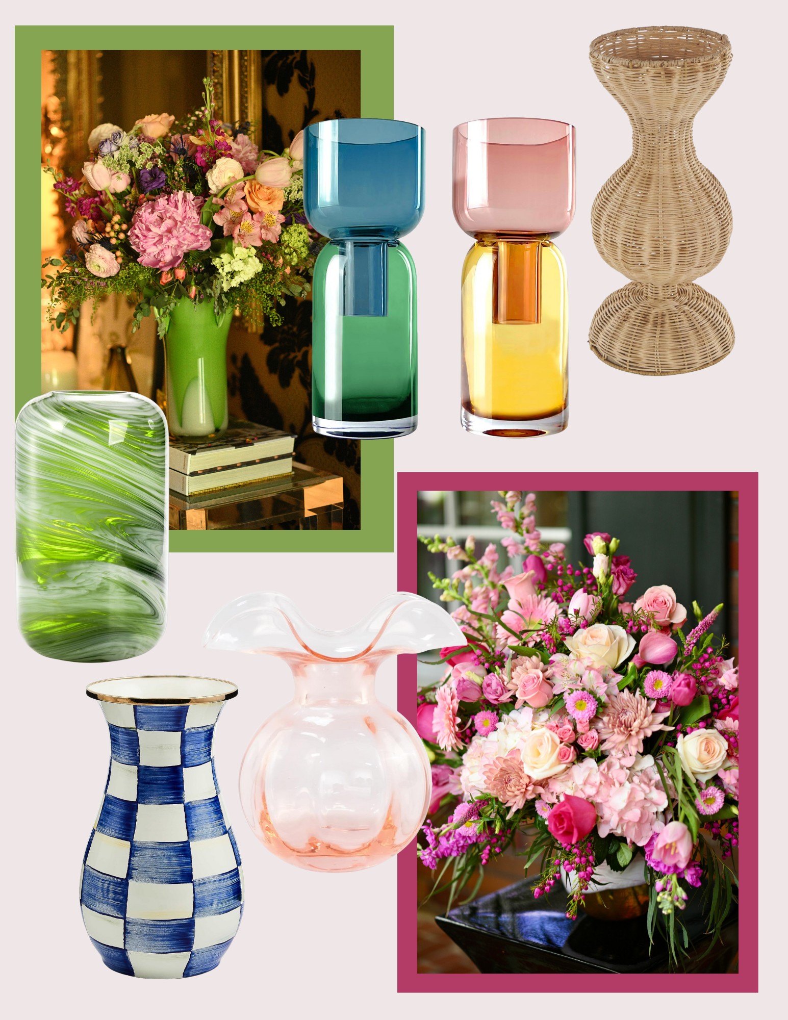 I guess I’m a homebody at heart and one of the things that makes me the happiest is when the house is neat and in order, the laundry is done, fresh flowers are scattered around, scented candles are burning and everything looks pretty! I’ve found the best floral designer right down the street and she knows exactly what I like! I take my vases to her and she surprises me with the most fabulous flowers you can imagine! I’ve been collecting vases for quite some time and love to match the flowers to the vase! I’ve been wanting a raffia covered vase for spring flowers and I found one that’s in the collage below!