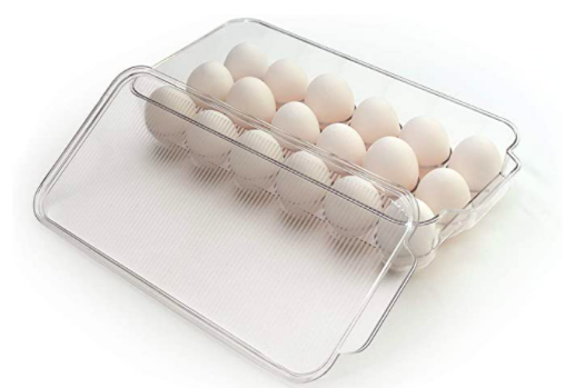 This egg holder holds 18 eggs and I love how it looks! I have a glass front refrigerator and want everything to stay looking organized at all times!