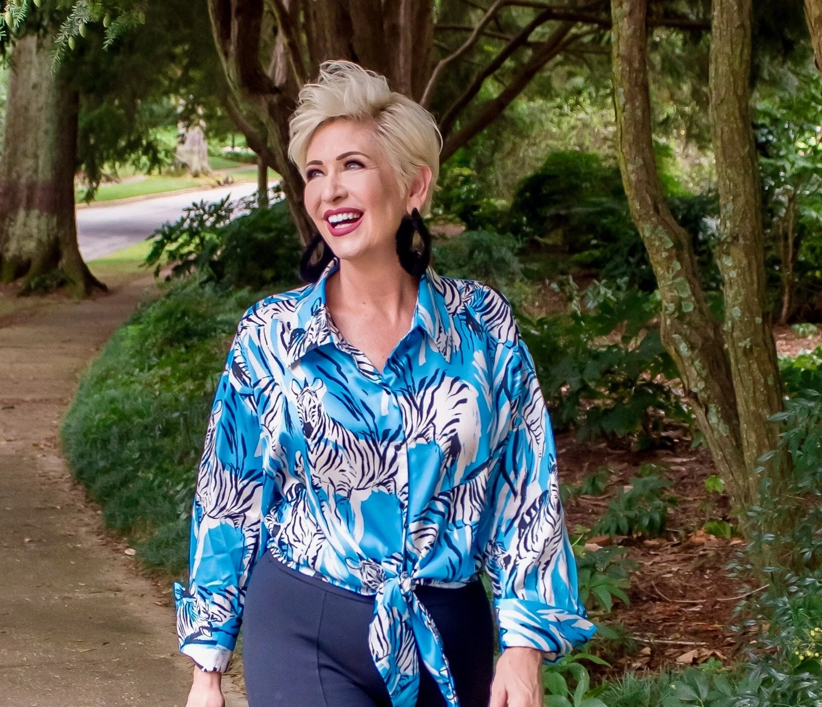 There is nothing better for transitional dressing than a dress with a denim jacket and Barbie has this look nailed. Her zebra blouse couldn’t be cuter and the earrings are a perfect accessory! Be sure to take a look at Southern Blonde Chic today and follow Barbie on Instagram! Have the best day ever!