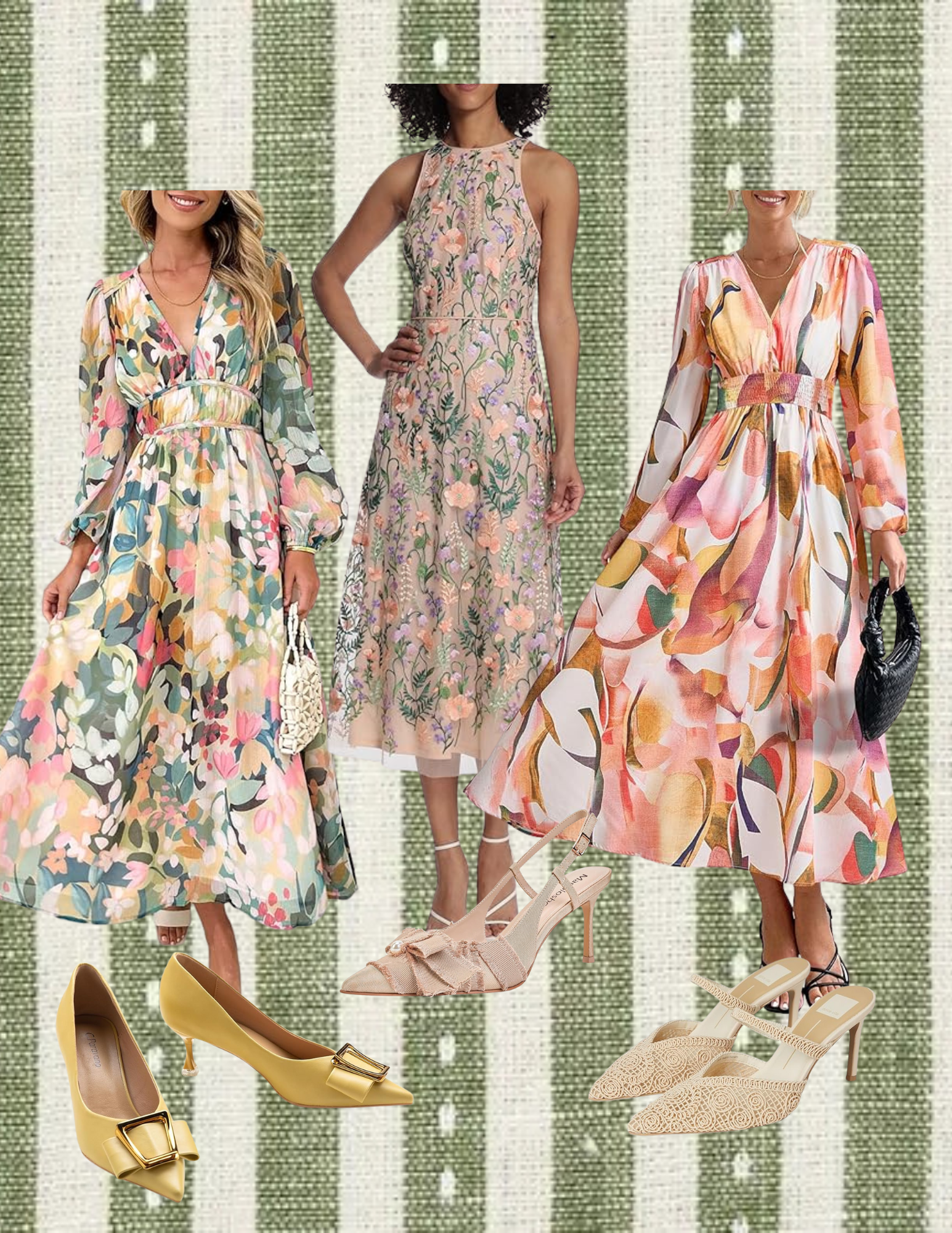 //Floral Dress (left)//Floral Dress (middle)//Floral Dress (right)//Dolce Vita Mules//Pointed Toe Sling Backs//Yellow Pumps//