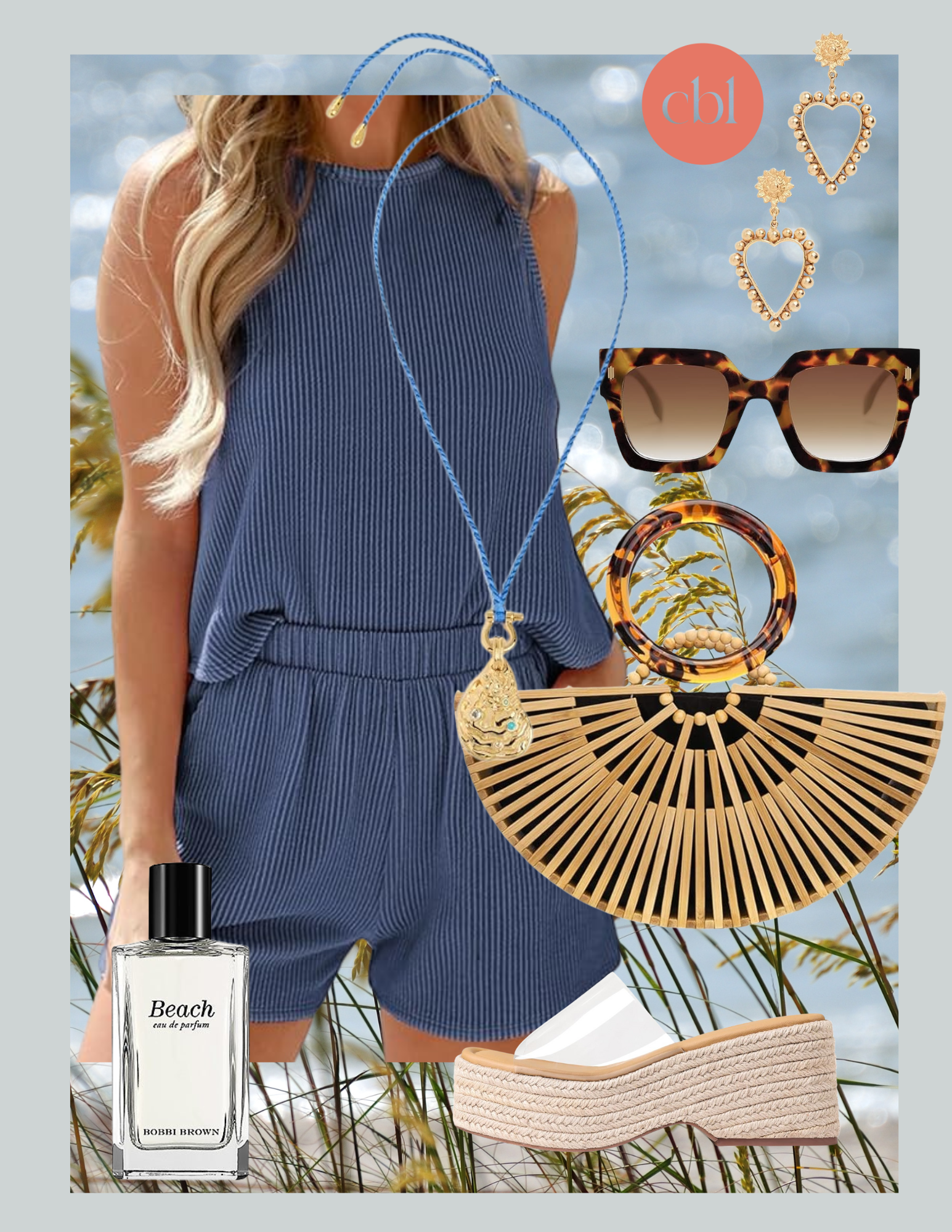 Another great two piece set…so cute with the blue necklace and the tortoise handle bag! I added the same sandals (20% off now) to the collage because they’re so cute with everything! Tortoise sunglasses are a must for summer! I’ve been using Bobbi Brown Beach Cologne for many years and it smells like the summers of my childhood!