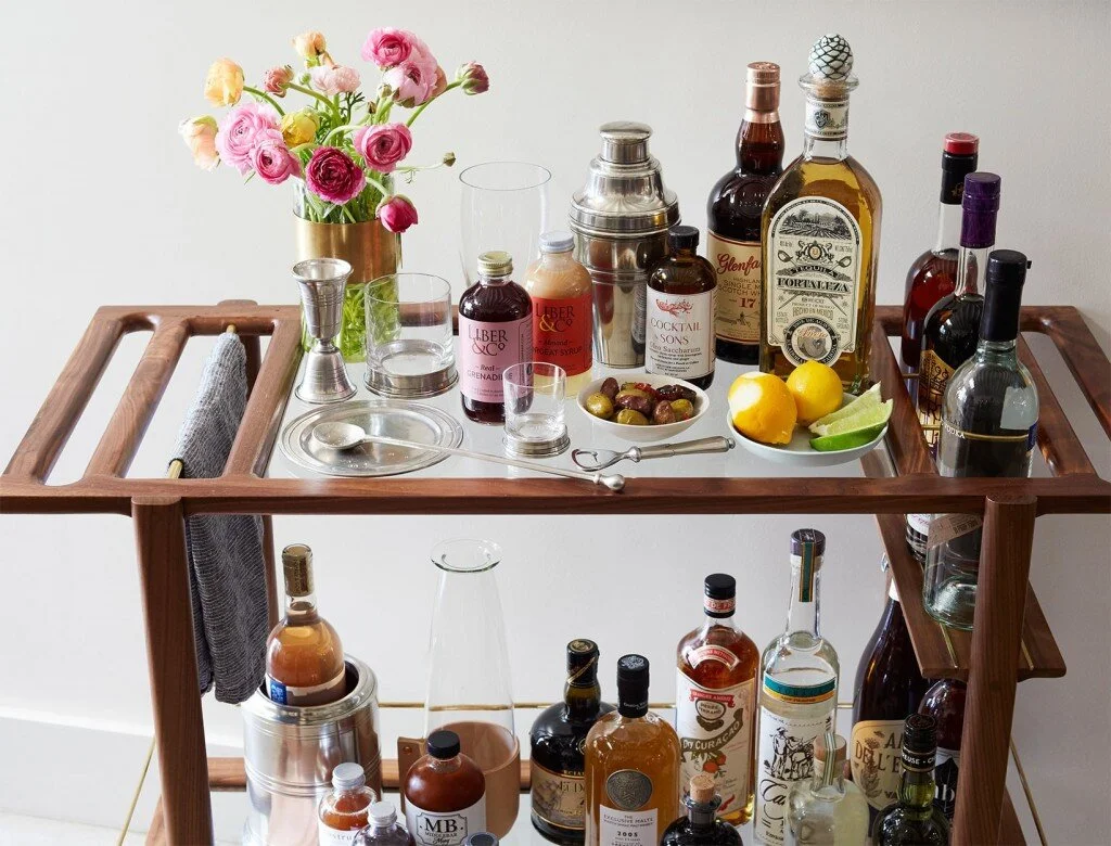 When stocking your bar cart, consider your needs and the beverages you like to drink and serve.
