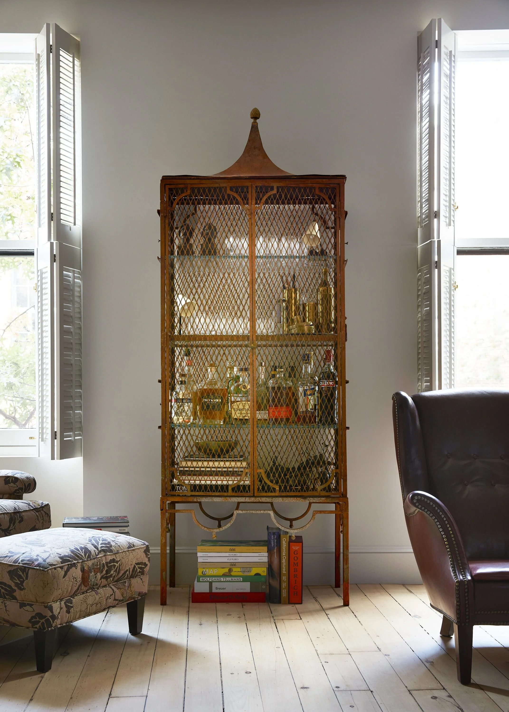 The bar cart (cabinet) above has serious style, but it’s also very practical and beautiful! The books that are decoratively placed on the floor ground the airy cabinet.