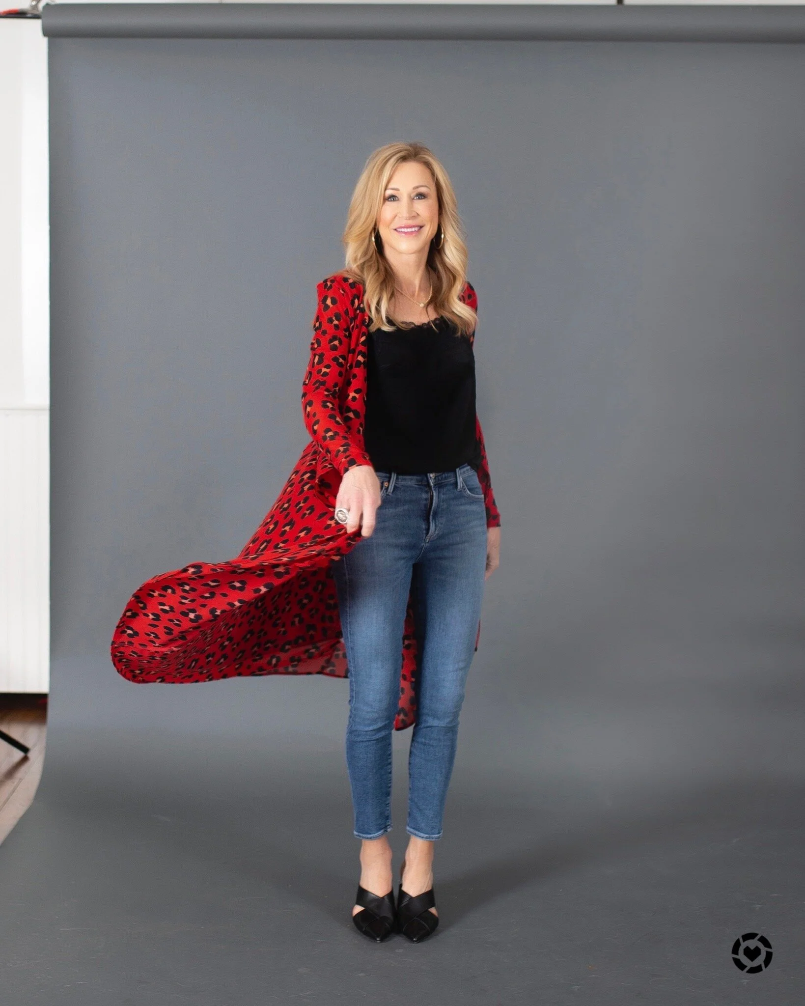 This is a wonderful stand out Cabi piece that will be front and center in my wardrobeβ¦hopefully soon! This piece is great as a kimono but is also a wrap dress making it soo versatile! You can see more of the Cabi Spring 2020 Collection in this post.