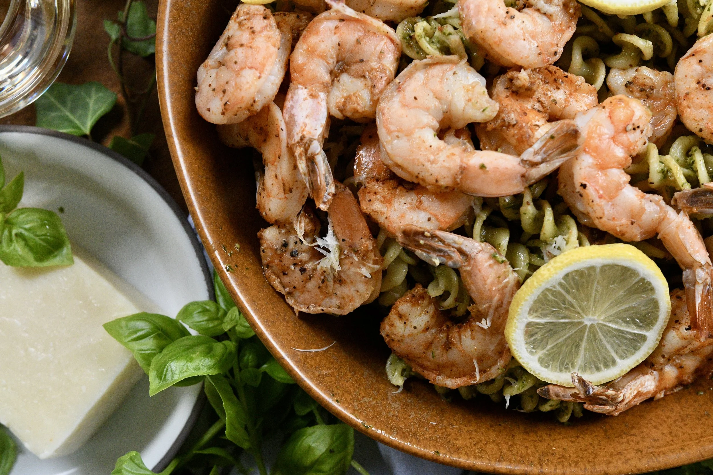 When the weather turns colder, I crave cozy, warming recipes. And of all the comfort foods out there, nothing hits the spot quite like a bowl of pasta! When it comes to pastaβ¦pesto pasta is my go-to and has been for years! One thing I really love about using pesto on my pasta is that it lends itself to endless topping options from a squeeze of fresh lemon juice and a sprinkle of Parmesan to chicken or salmon or shrimp! I also like to vary the noodles and mix things up! Pasta feeds a crowd and everyone likes it, so why not?