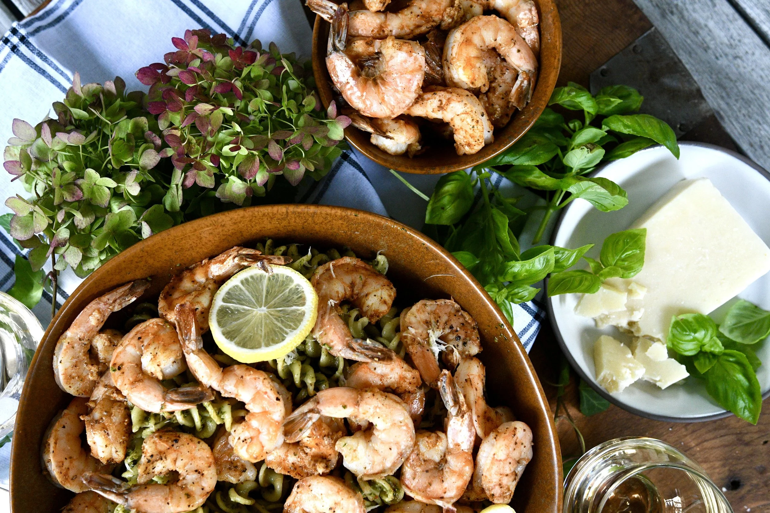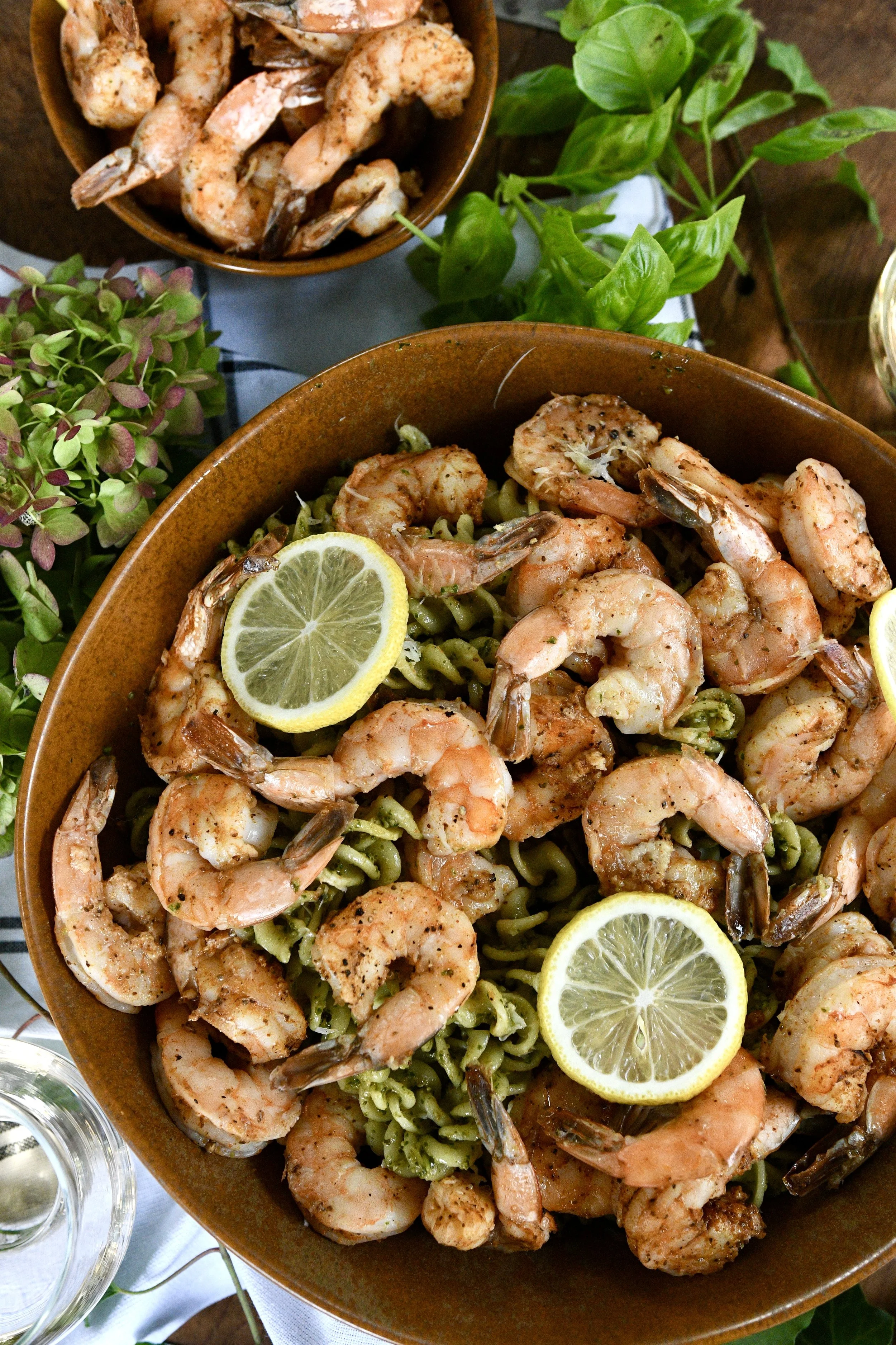 This absolutely delicious Pesto Pasta might just be my favorite comfort food ever and the addition of shrimp is a winner! These shrimp are so easy to makeβ¦just season and put under the broiler for 2 - 3 minutes and theyβre perfect every time! Prepare yourself for major deliciousness aheadβ¦just scroll to the recipe!!