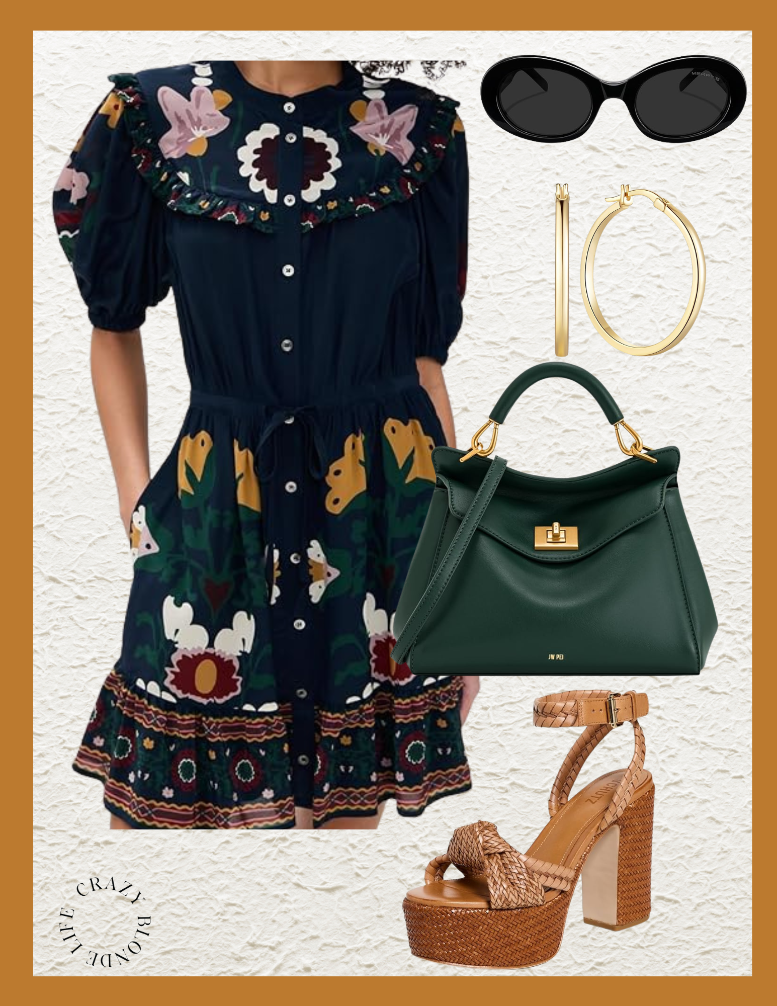 This gorgeous dress from Sea is 30% off and it’s a dress you’ll wear almost year round. It’ll be great with boots or booties later and perfect with sandals now! The green bag is also a year round piece that’s very neutral…think camel, brown and orange!