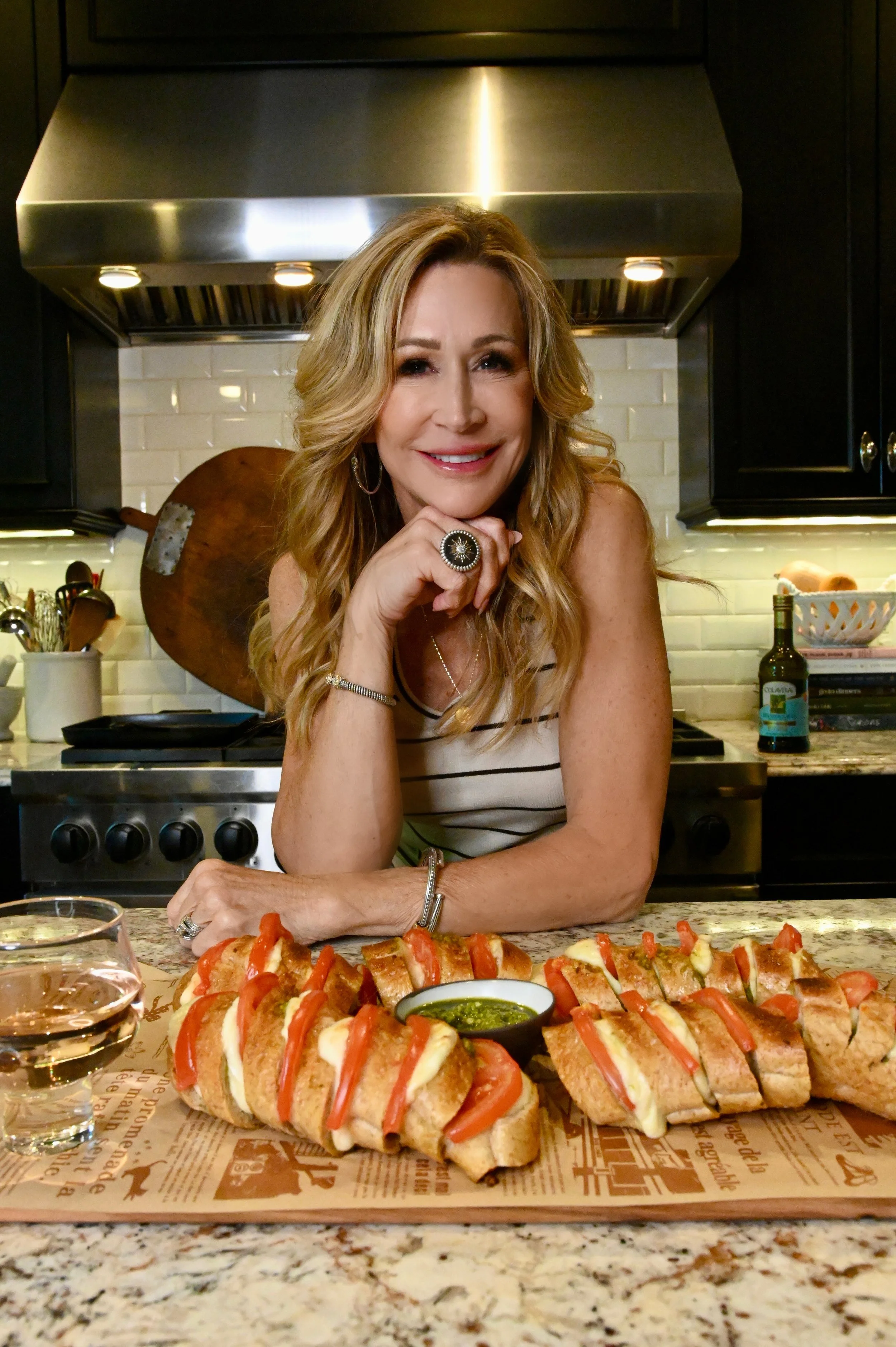 Fortunately, good pesto is easy to purchase these days and for this recipe, it’s perfectly fine to use a store bought pesto. There really are no proportions, just make this to your taste. Use 1 baguette or 20 depending on how many people you want to serve! It’s a perfect recipe for a crowd!
