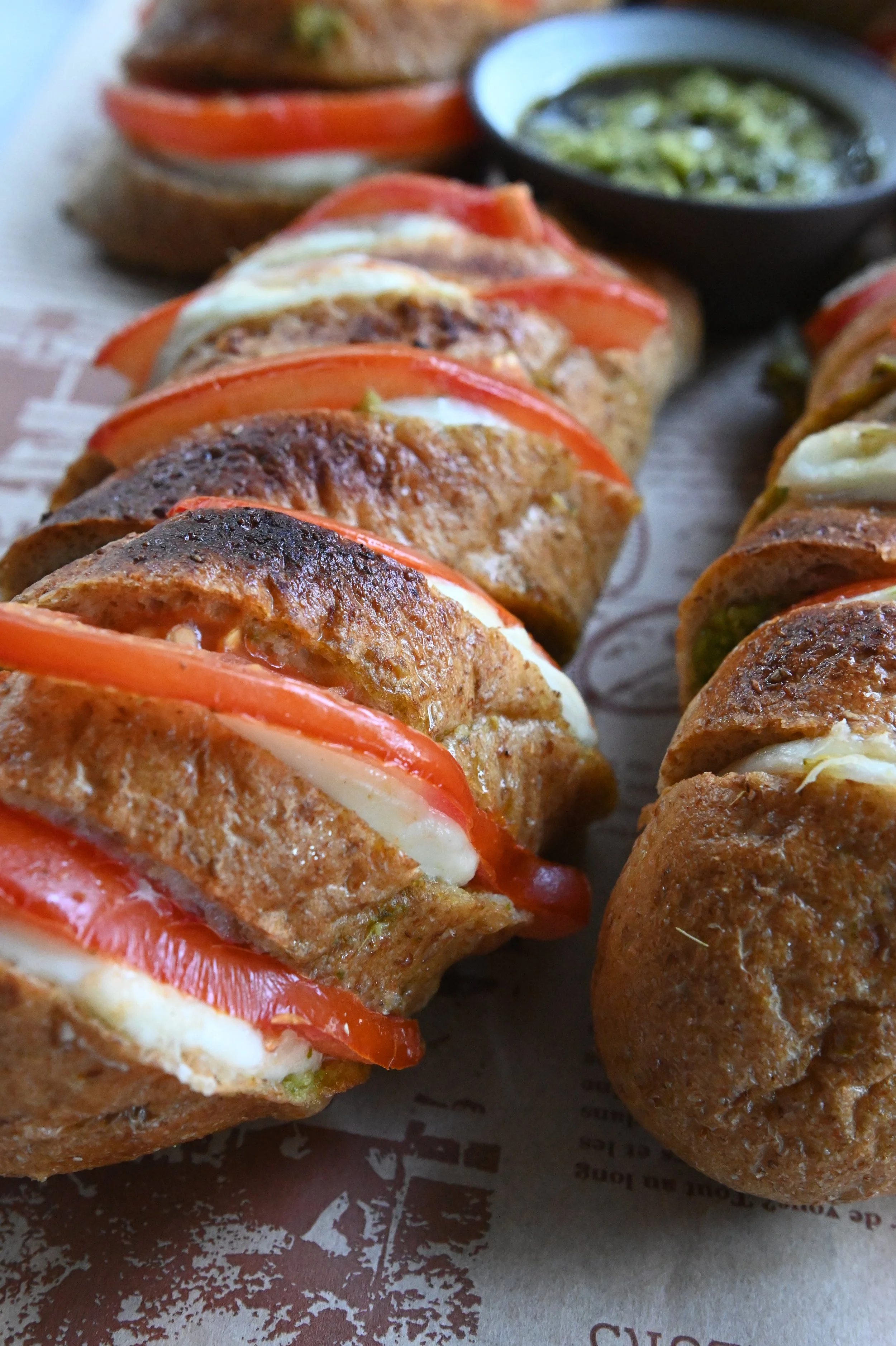 Mozzarella, Tomatoes & Pesto on a Baguette - the Perfect Summer Appetizer!