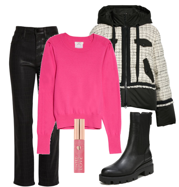 If you’re wanting to jazz up your style, you might want to consider a pink and black outfit! Pink and black contrast in a bold, daring way and you’ll definitely turn some heads. The pink sweater (on sale) would be amazing going into spring paired with white jeans! Even thought it’s still winter outside, it’s not too early to start thinking about spring looks!