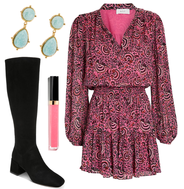 Valentine’s Day is coming soon and I love this dress from Intermix paired with black boots. It’s a never-go-out-of-style, keep forever dress!