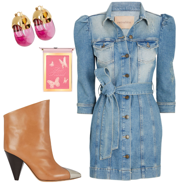 Once again, denim dresses are trending for spring. This one is updated with the puff sleeve and western details!