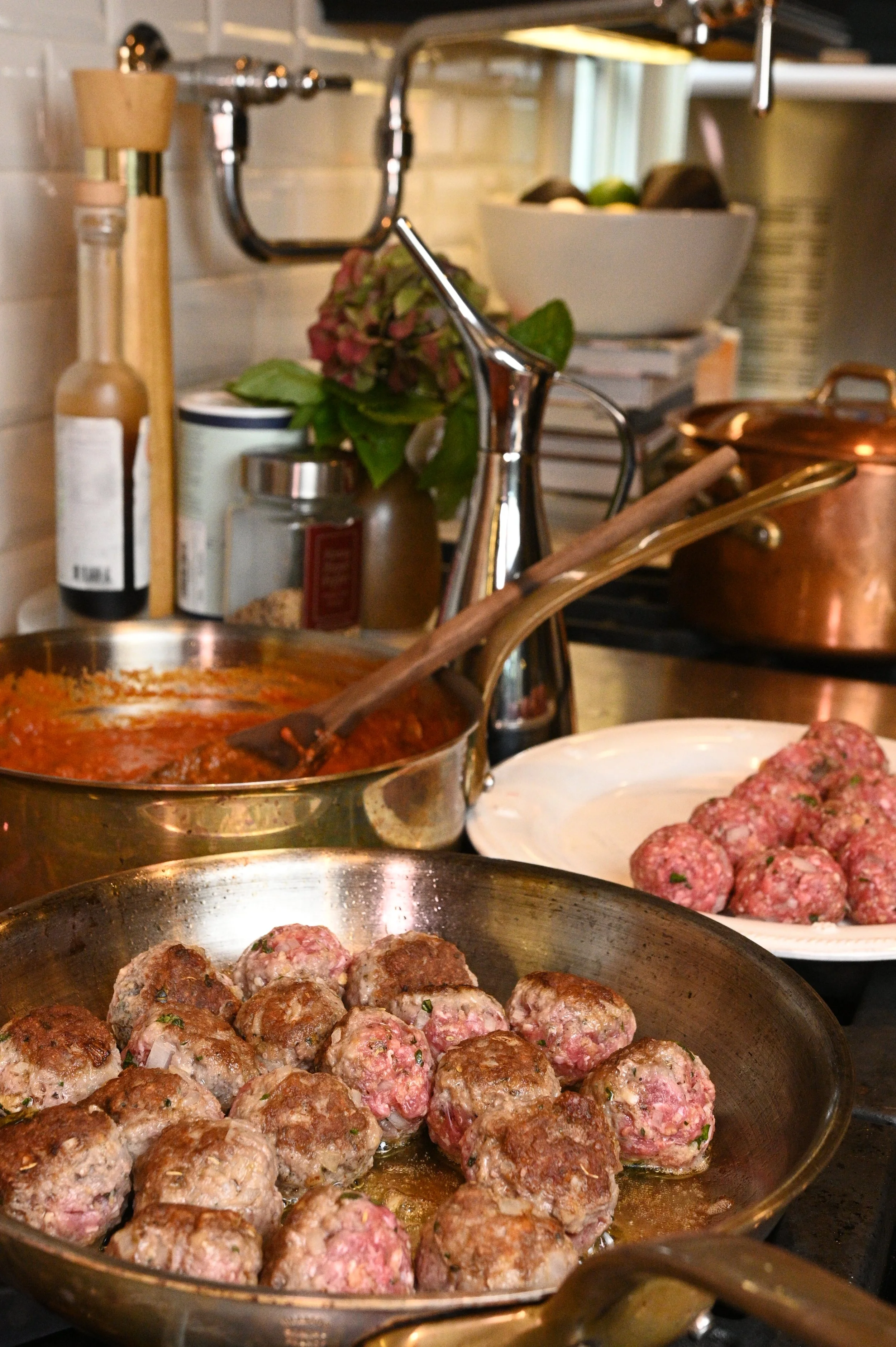 My recipe for Meatballs in Tomato Sauce with Goat Cheese & Basil is so easy to make and really doesn’t make that much of a mess. It’s great as an appetizer with toasted French bread, but you could also serve these meatballs over pasta…the goat cheese would melt into the pasta making a creamy and delicious sauce! I’ll have to try that next time…