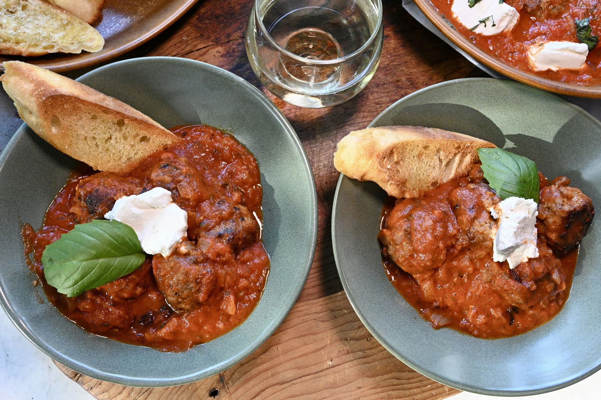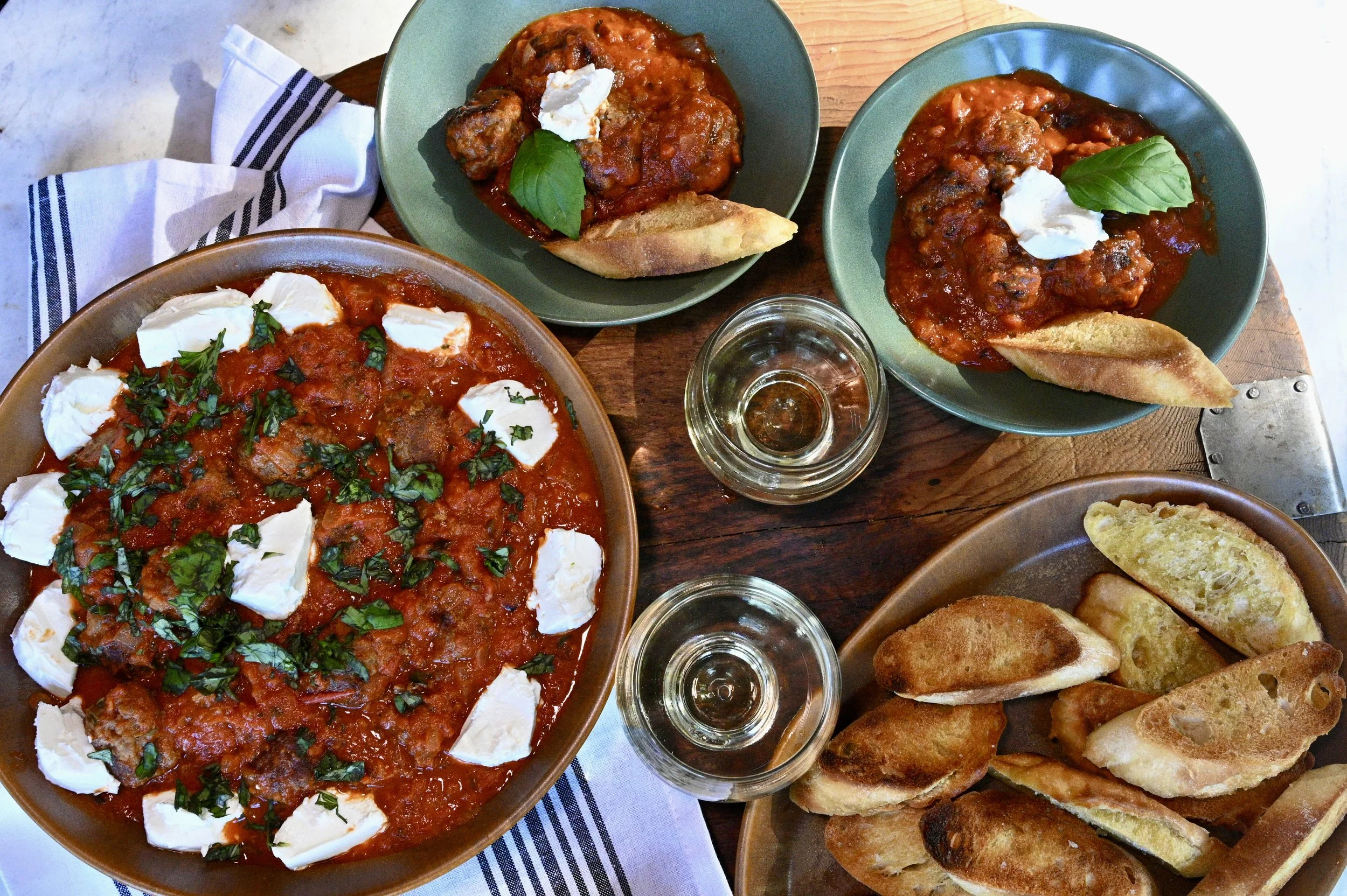Meatballs in Tomato Sauce with Goat Cheese & Basil