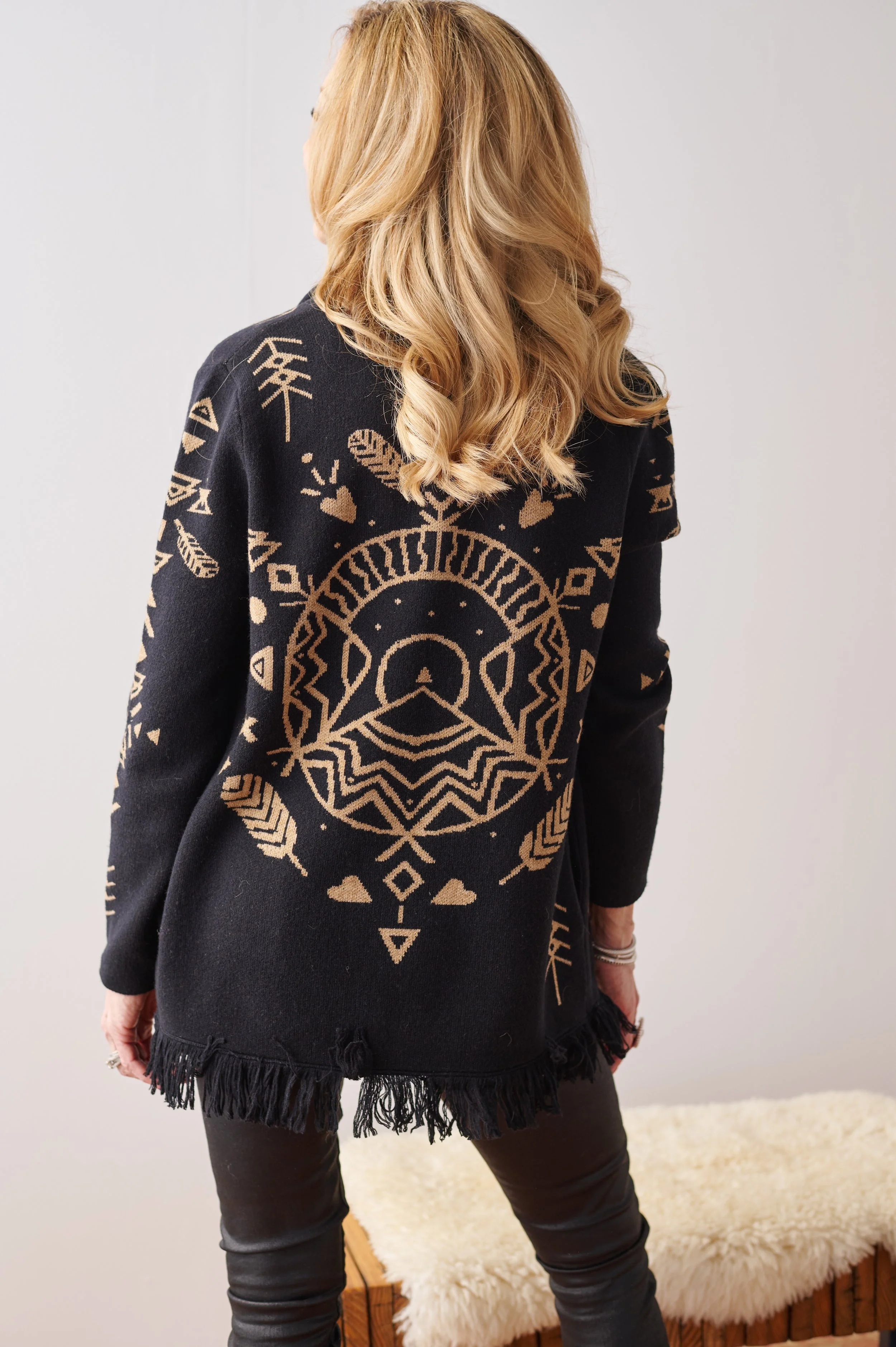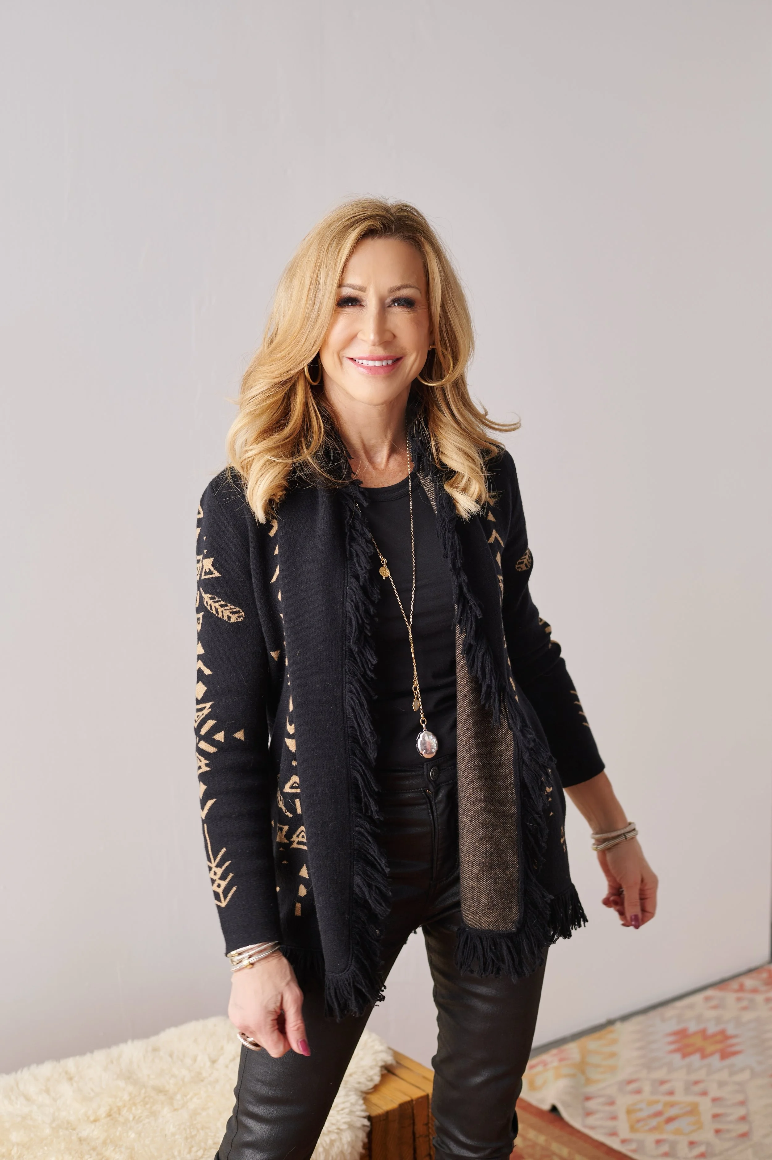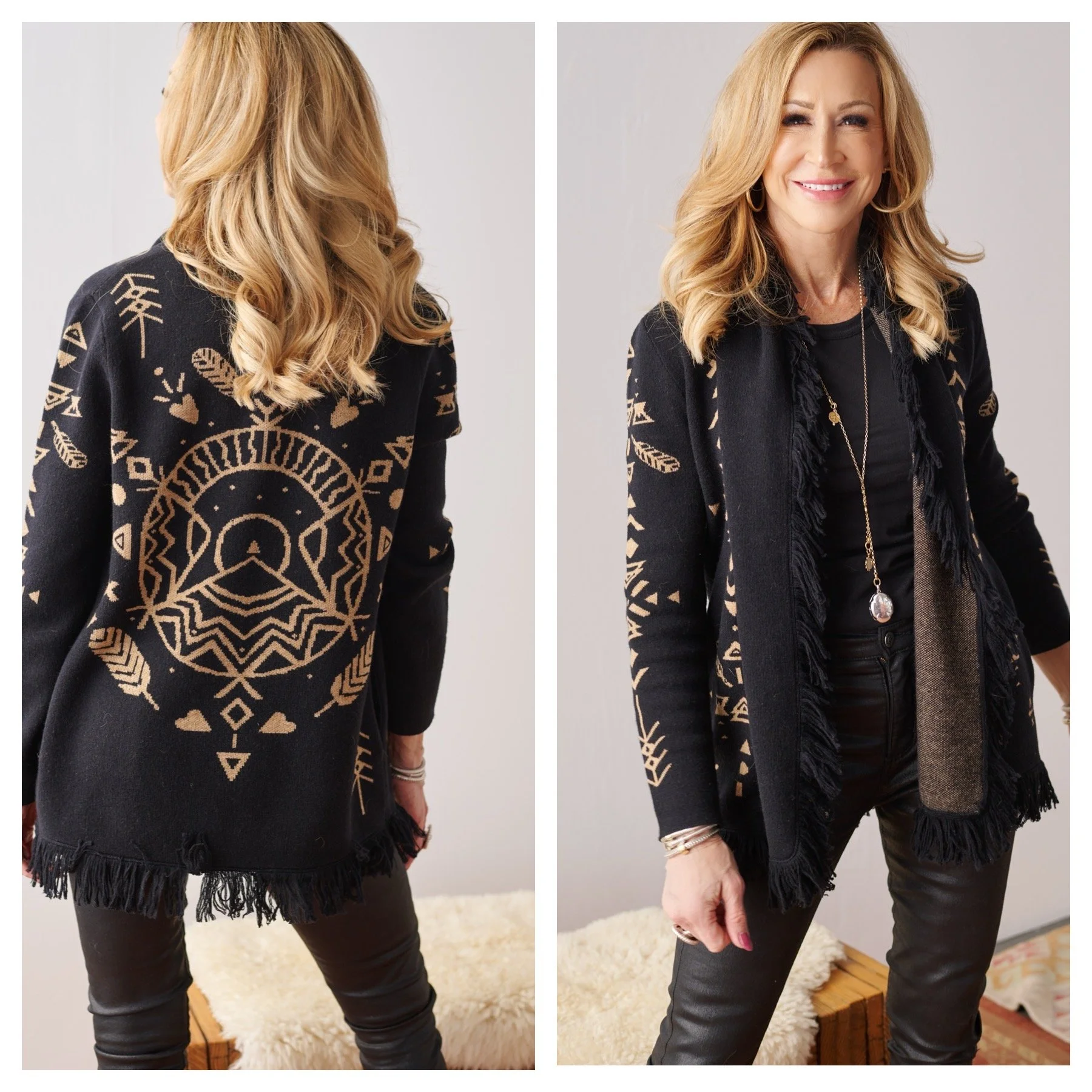 The Earth Mother Cardigan (on sale now) is a perfect layering piece. It’s lightweight and features beautiful boho-inspired detailing on the back with a frayed edge. Pair this open-front cardigan with black jeans and a tank and scrunch booties as I have or throw it on over your favorite dress. And, of course, it looks great with jeans!