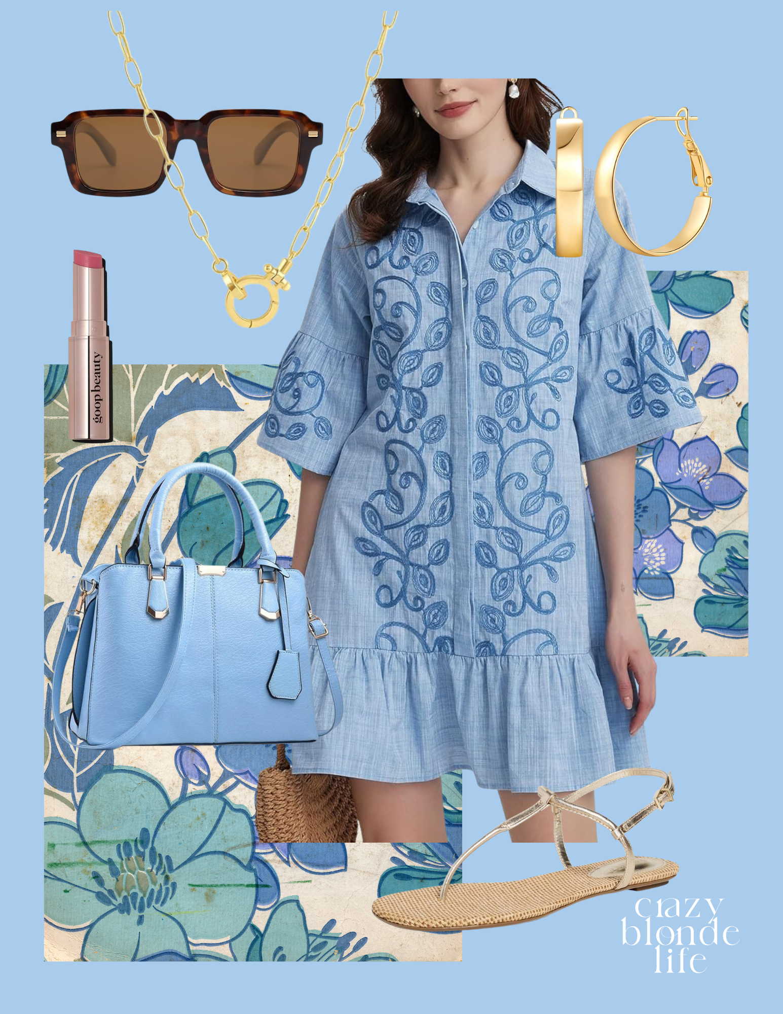 I included the adorable summer blue dress because it has such a Tuckernuck feel and the embroidery is so cute. Throw on a denim jacket and wear some booties with it going into fall!