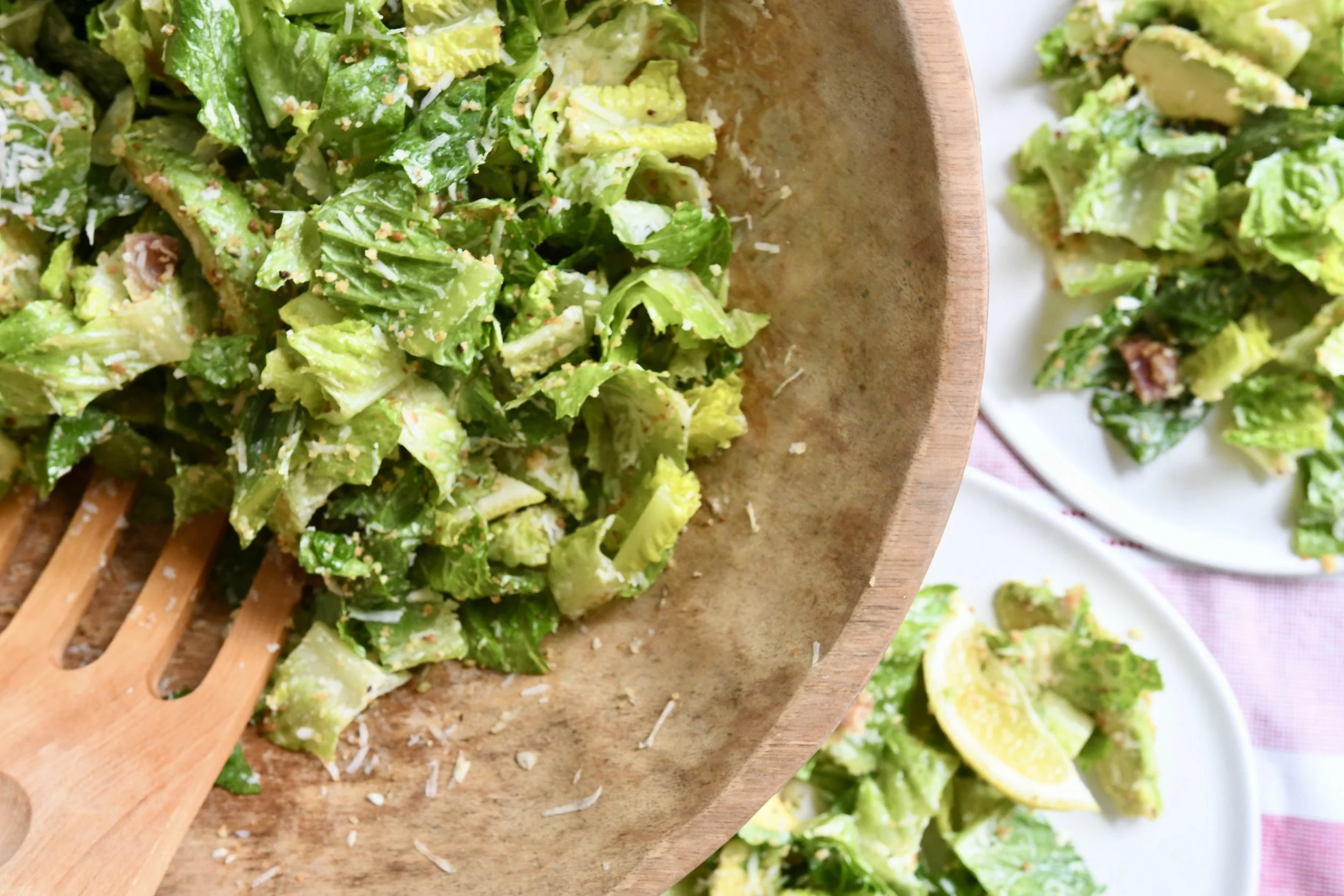 Doesn’t this salad look mouthwatering…I wish you could taste the picture! It’s so much easier to make than a traditional Caesar salad!