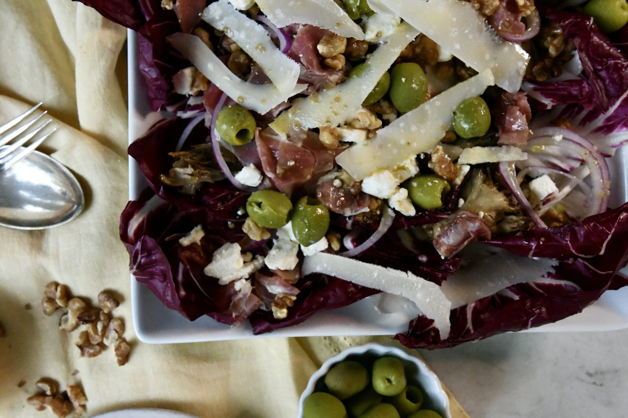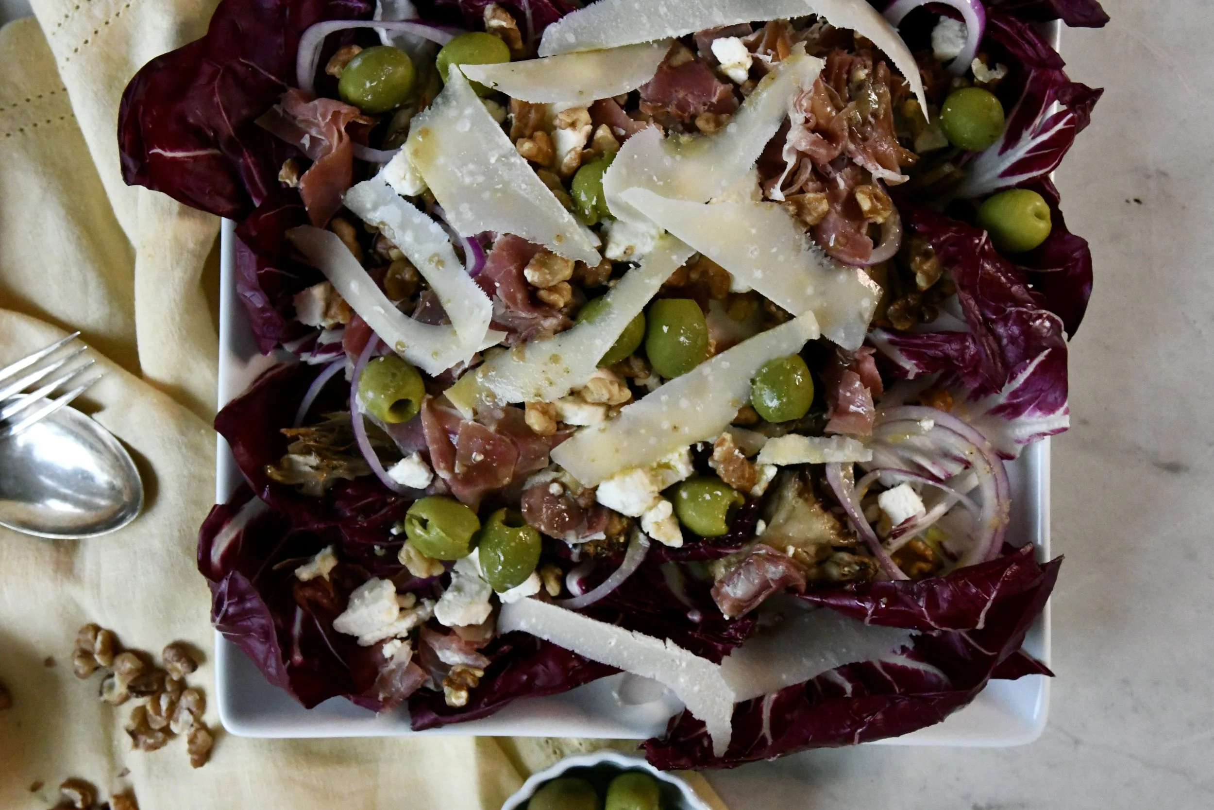 Fall Salad with Radicchio, Shaved Parmesan and Green Olives - Serves 2