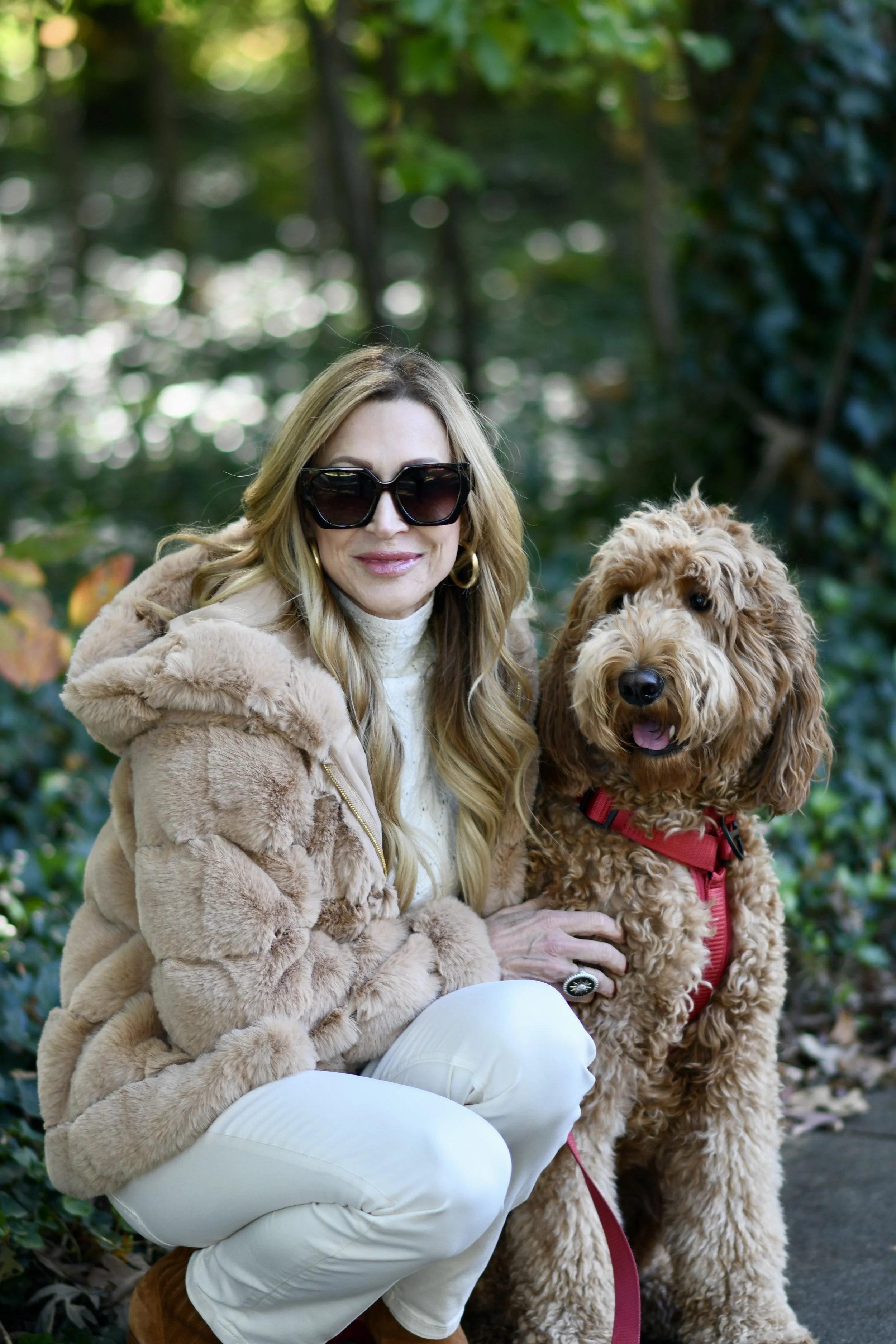 Of all the Boston Proper pieces in this post, this coat is my favorite! I know I’ll get so much wear out of it because it’s so soft and can be dressed up or down! I love that it has a hood because I’m always cold and a hood gives extra warmth. I think this adorable coat makes an elegant statement…and Amos and I match!