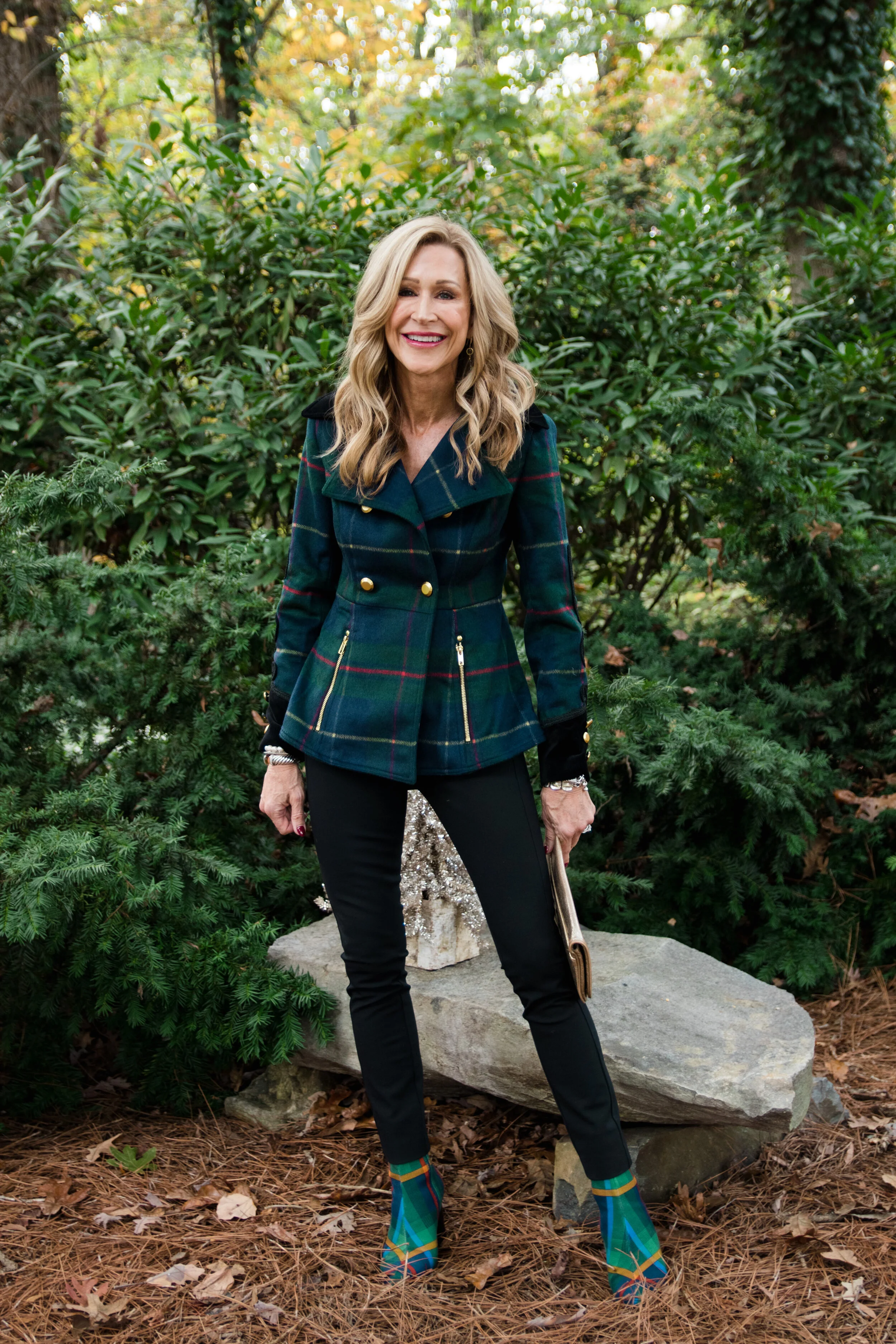 This was one of my most popular posts! Everyone loves plaid for the holidaysβ¦I also added plaid boots combined with this fabulous plaid jacket (on sale) to make this outfit bold!