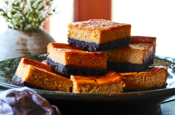 Chocolate Pumpkin Cheesecake Bars with Oreo Crust from Whatβs Gaby Cooking