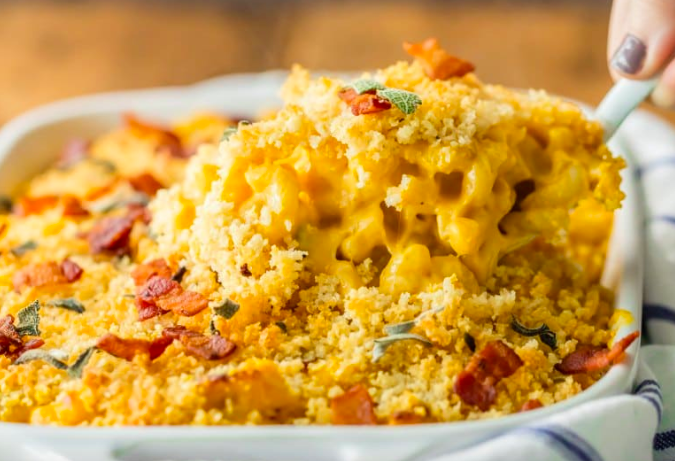 Baked Pumpkin and Bacon Mac & Cheese from The Cookie Rookie