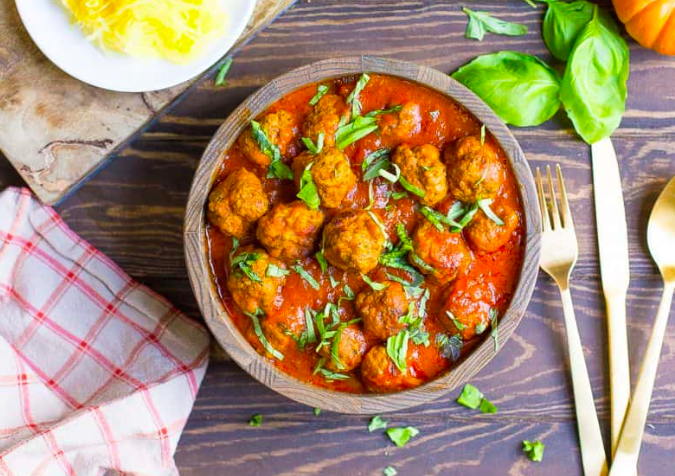 Pumpkin Tomato Basil Meatballs from Wholesomelicious