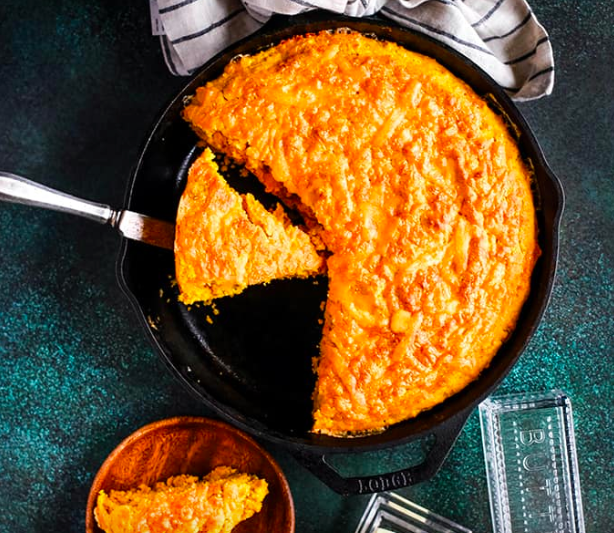 Pumpkin Cream Cheese Skillet Cornbread from Melanie Makes