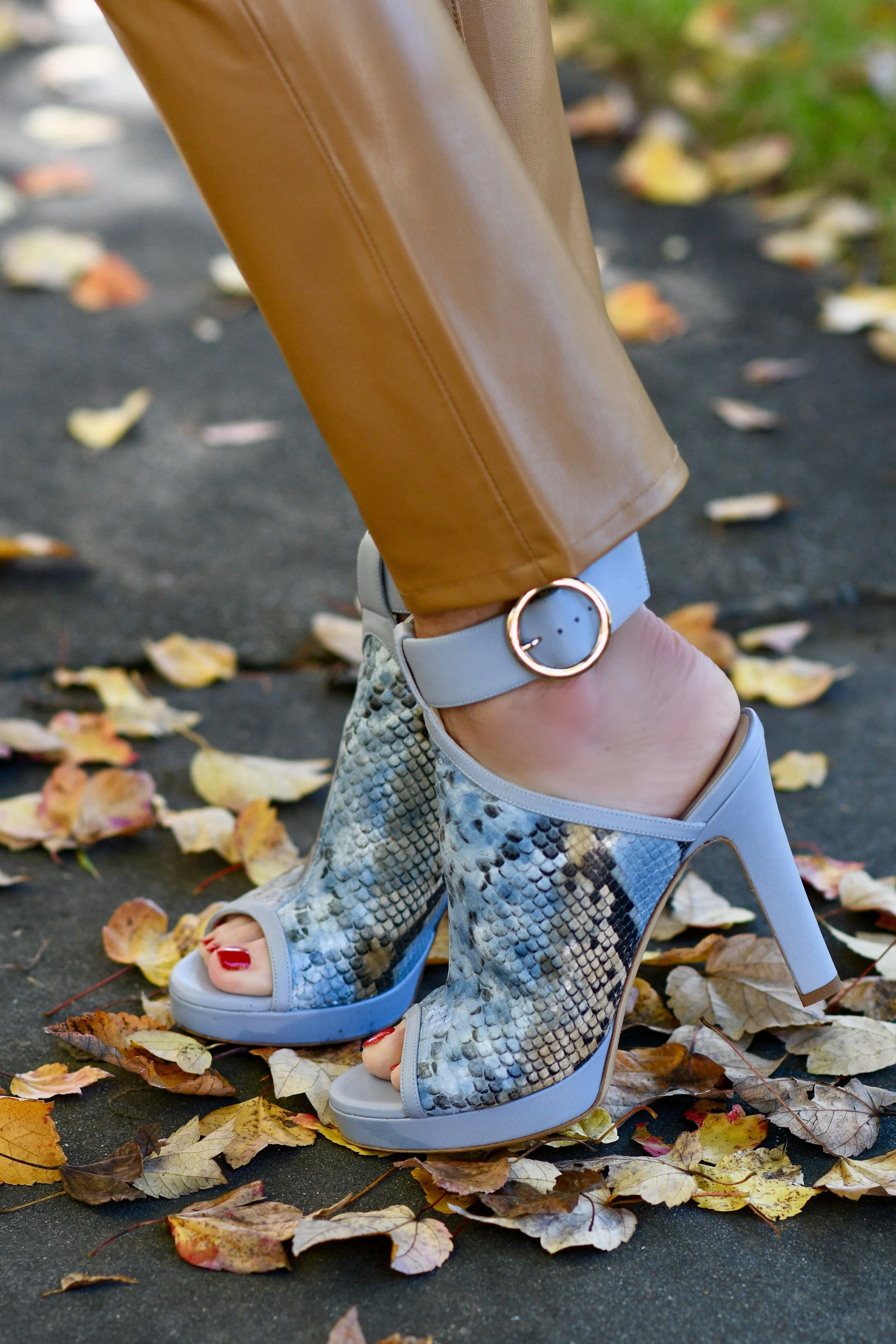 The key to mixing patterns and textures is to stay within the same color palette and tone. The thing that makes pattern mixing work is pairing two patterns together with similar colors. Along with that, match tones when pattern mixing and add a solid color to bring it all together. Mixing bold patterns like leopard or snakeskin and plaid may seem like a fashion faux pas, but it’s a bold fashion move to select two prints that don’t share any commonalities. Anchor the look with a neutral item, like the solid pant I’m wearing here.