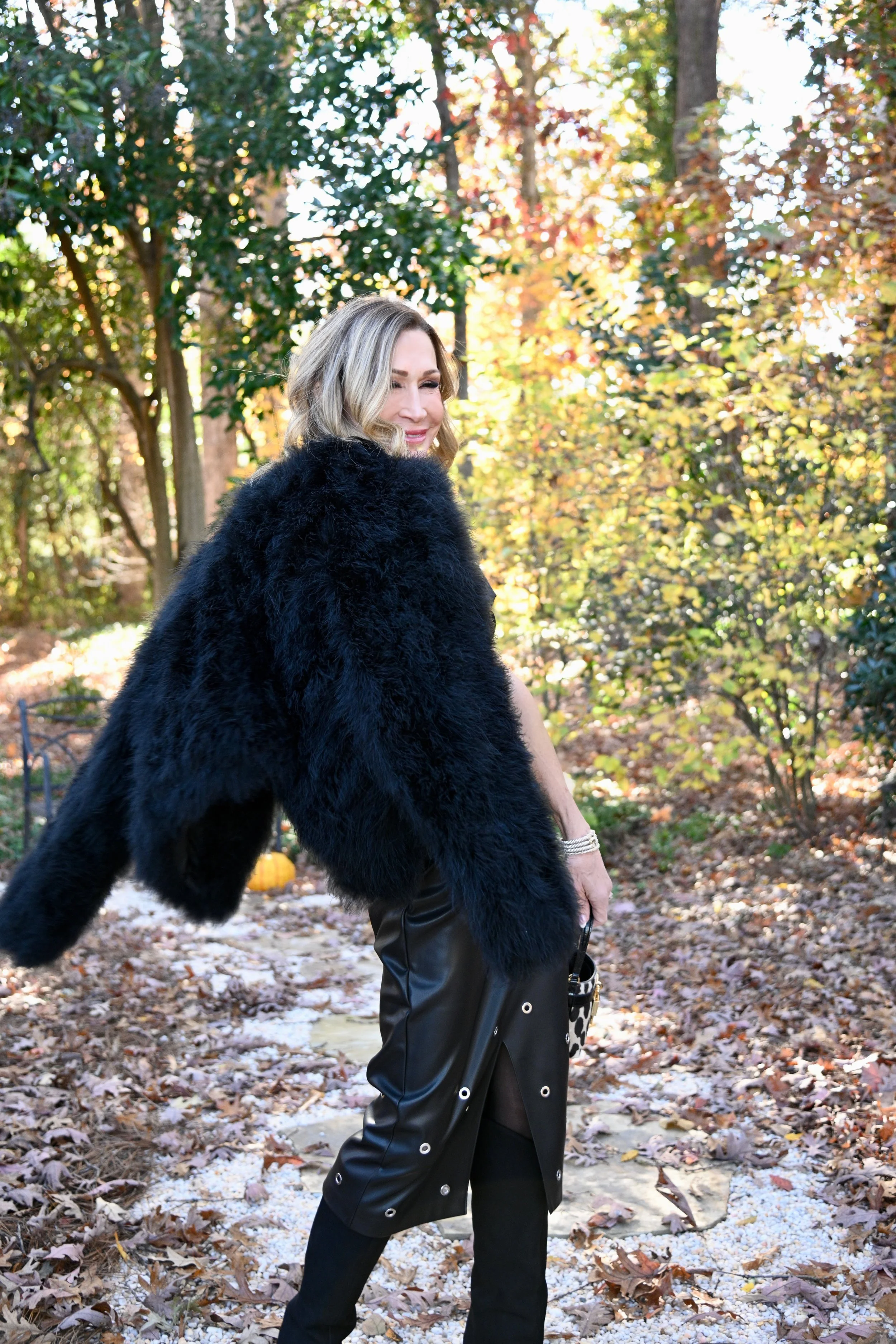 This Brochu Walker look is one of my absolute favorite outfits of the season…a chic vegan-leather pencil skirt with grommets paired with a ribbed knit top featuring elegant balloon sleeves. I styled this look with tall black suede boots from Schutz and a cropped black faux-fur coat for an outfit with a sophisticated, modern feel that works beautifully almost year-round, but feels especially chic during the holiday season. Each piece stands on its own as a versatile separate that can be dressed up or down, and together they create a look that’s effortlessly polished. I’m planning to pack this outfit for dinner in New York this December, and I know it will be perfect for a stylish evening in the city…with a long coat, of course! I will also be packing and wearing my fabulous jewelry from VAHAN that I wear with everything, every day!