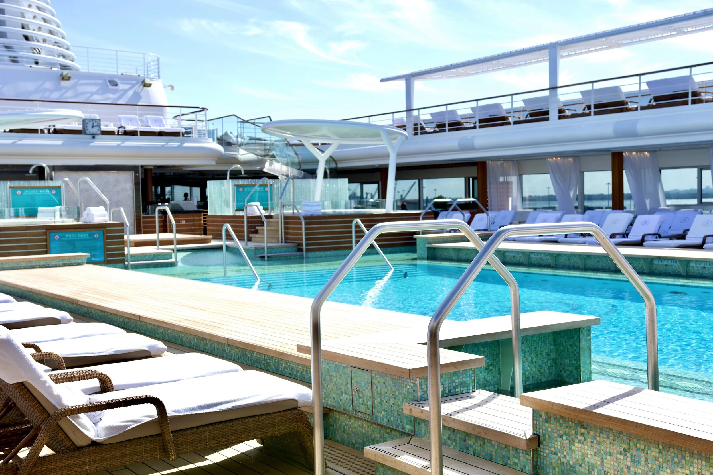 As we were ordering our drinks, some of the passengers were boarding the ship for the next voyage. They settled in quickly, choosing delicious food from the poolside buffet, taking a swim in the pool, or just relaxing in the sun with a drink. As you can imagine, everyone seemed thrilled to be there and start a new adventure.