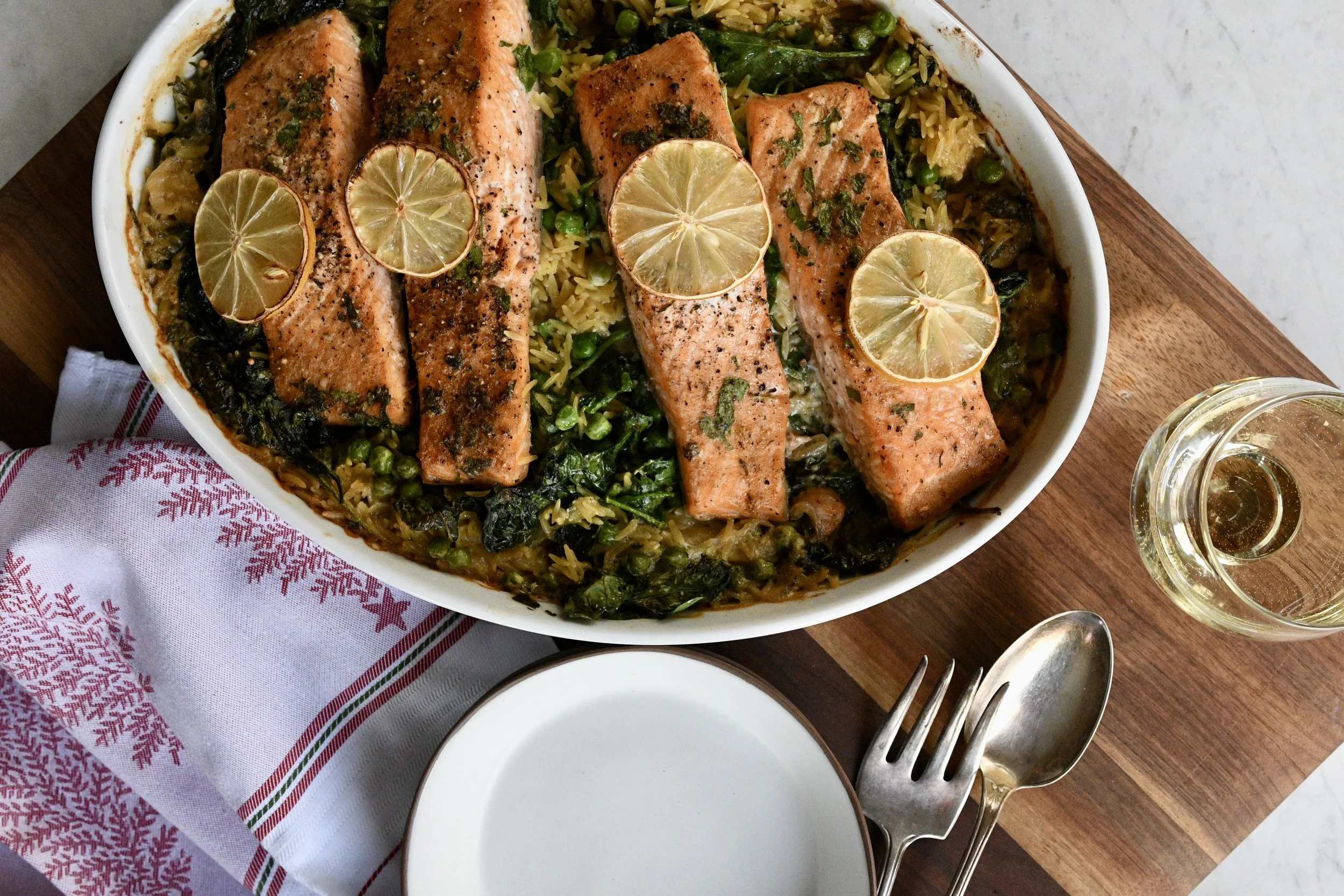 Salmon with Orzo & Spinach - A One Dish Dinner