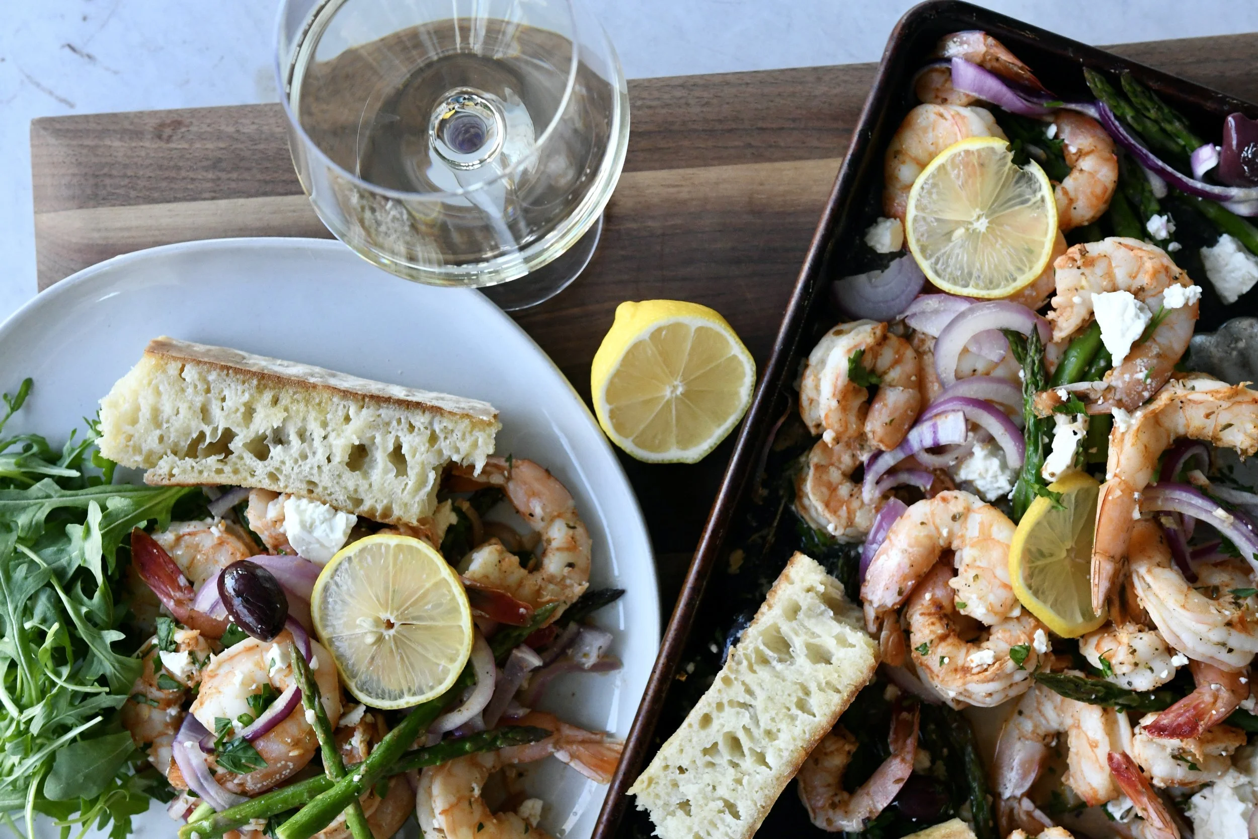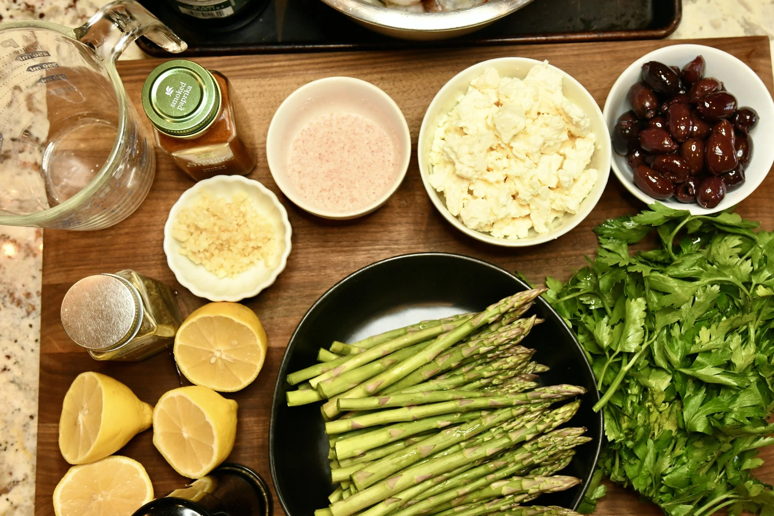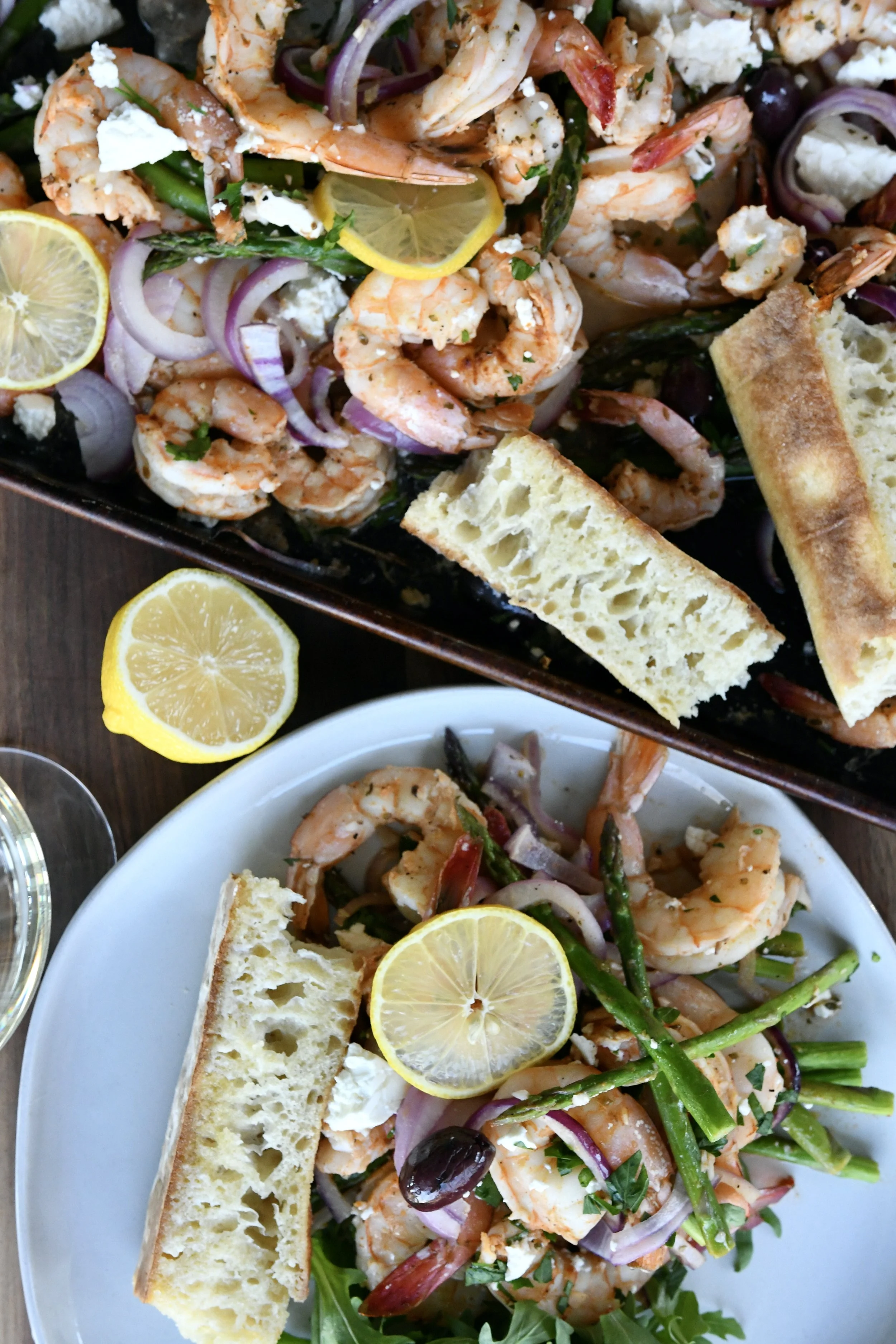 I promise this is the last recipe I’ll post for a while with feta and olives….but you’ll have to admit it’s a winning combination! This recipe for Sheet Pan Shrimp with Asparagus might just be the easiest recipe you ever make! If you don’t peel and devein your own shrimp, it comes together in about 10 minutes, Assemble, bake, sprinkle with feta, olives and parsley and enjoy! Don’t forget to serve this shrimp with warm garlic bread to soak up the delicious sauce! If you love shrimp, you’ll love this recipe! Be sure to check out my video on Instagram to see exactly how it’s done!