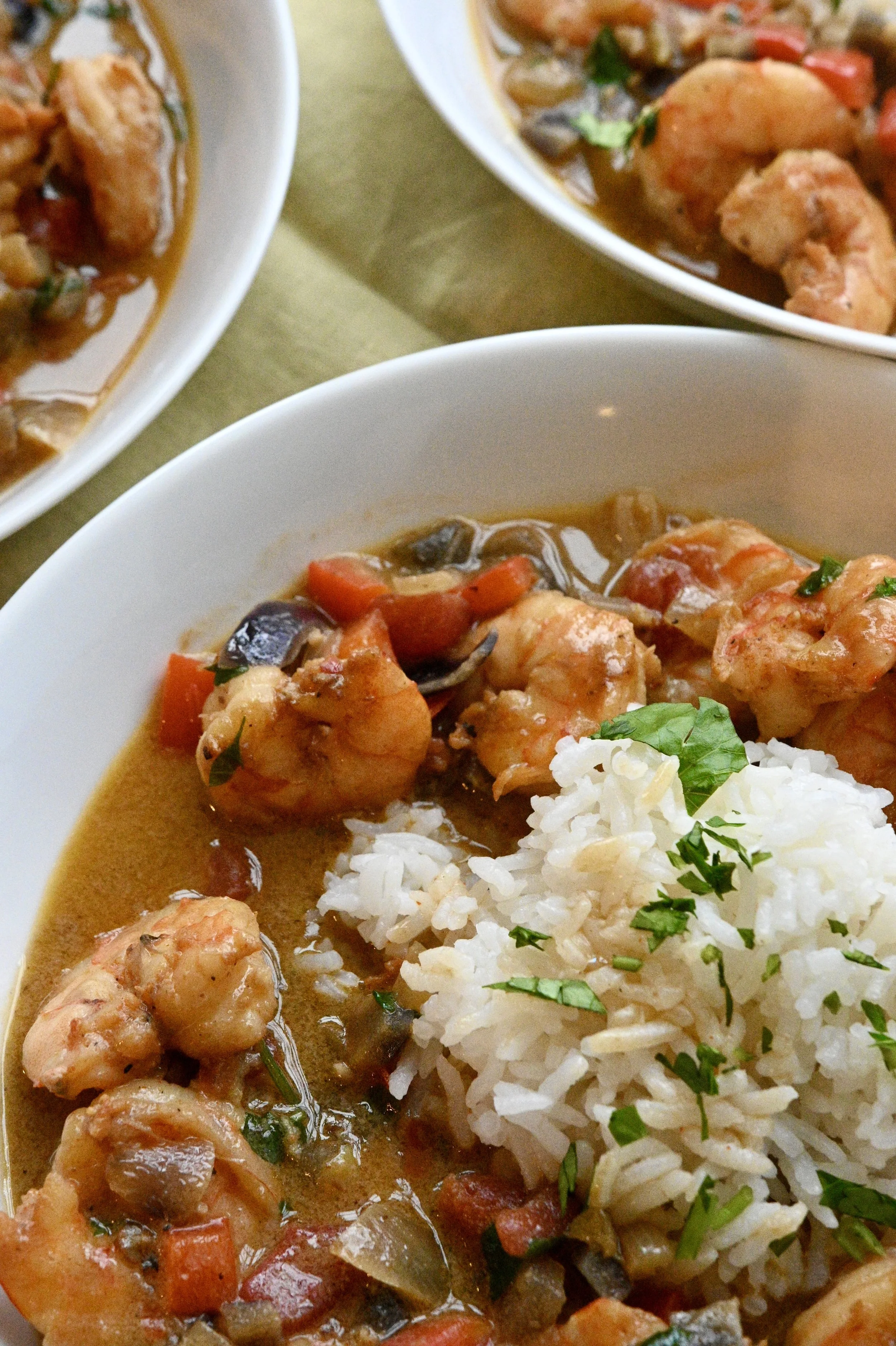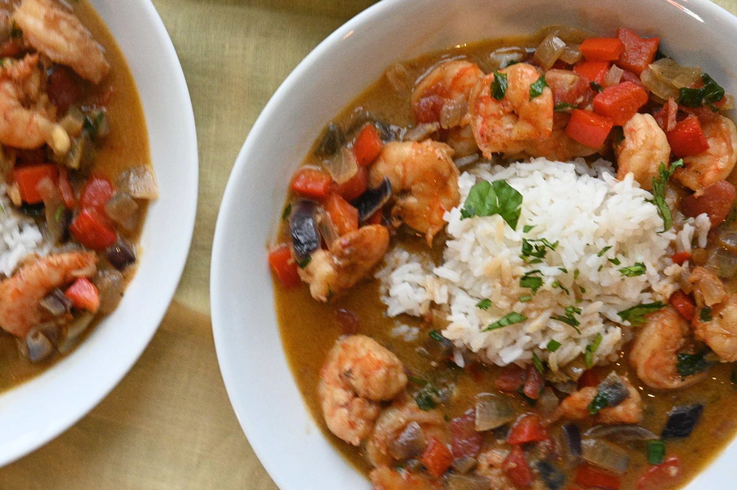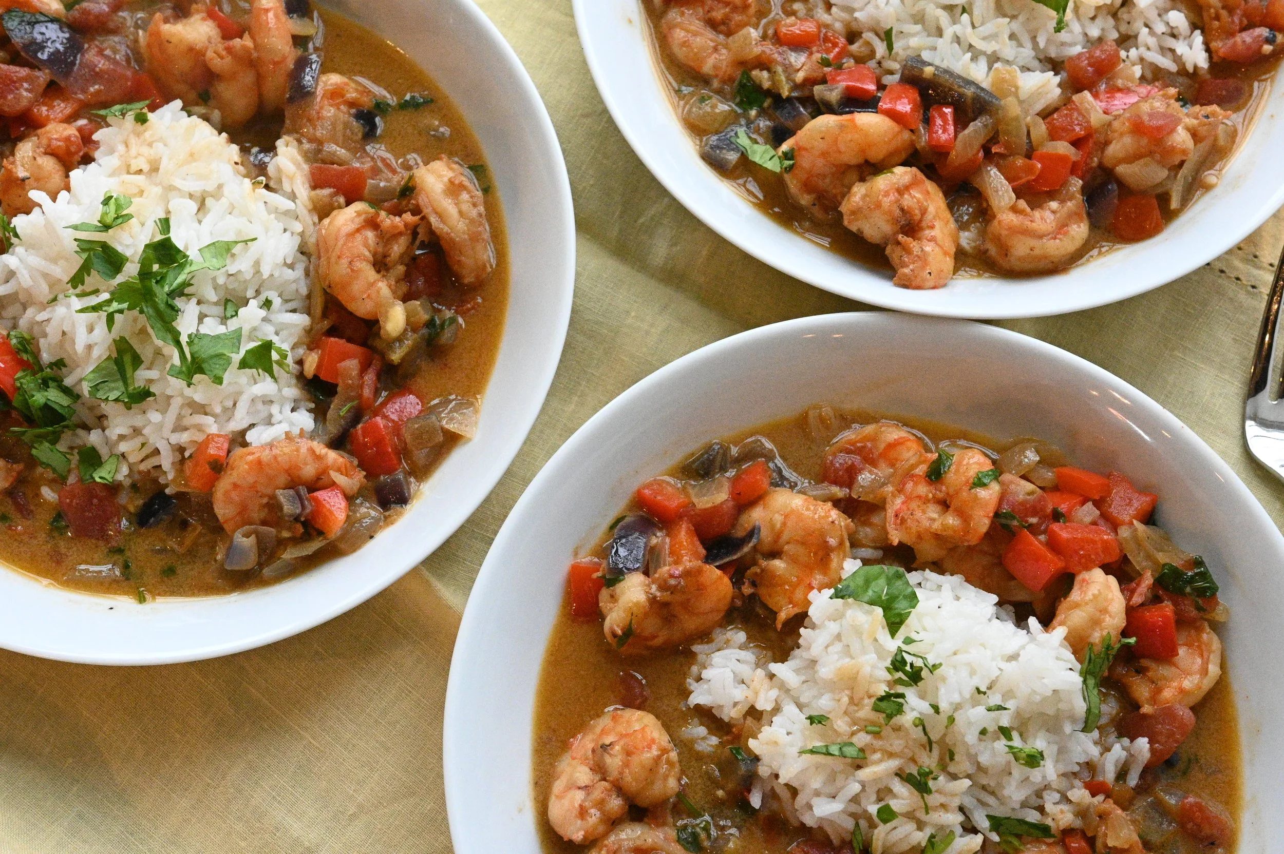 The sauce is what makes this dish shine. Rich coconut milk meets a splash of white wine and tomato paste, with a can of Rotel adding just the right amount of kick. Sautéed onions, red bell pepper, and garlic create this incredible base that smells amazing while it's cooking. Then in go the shrimp, and everything comes together in this creamy, slightly spicy, totally crave-worthy sauce.