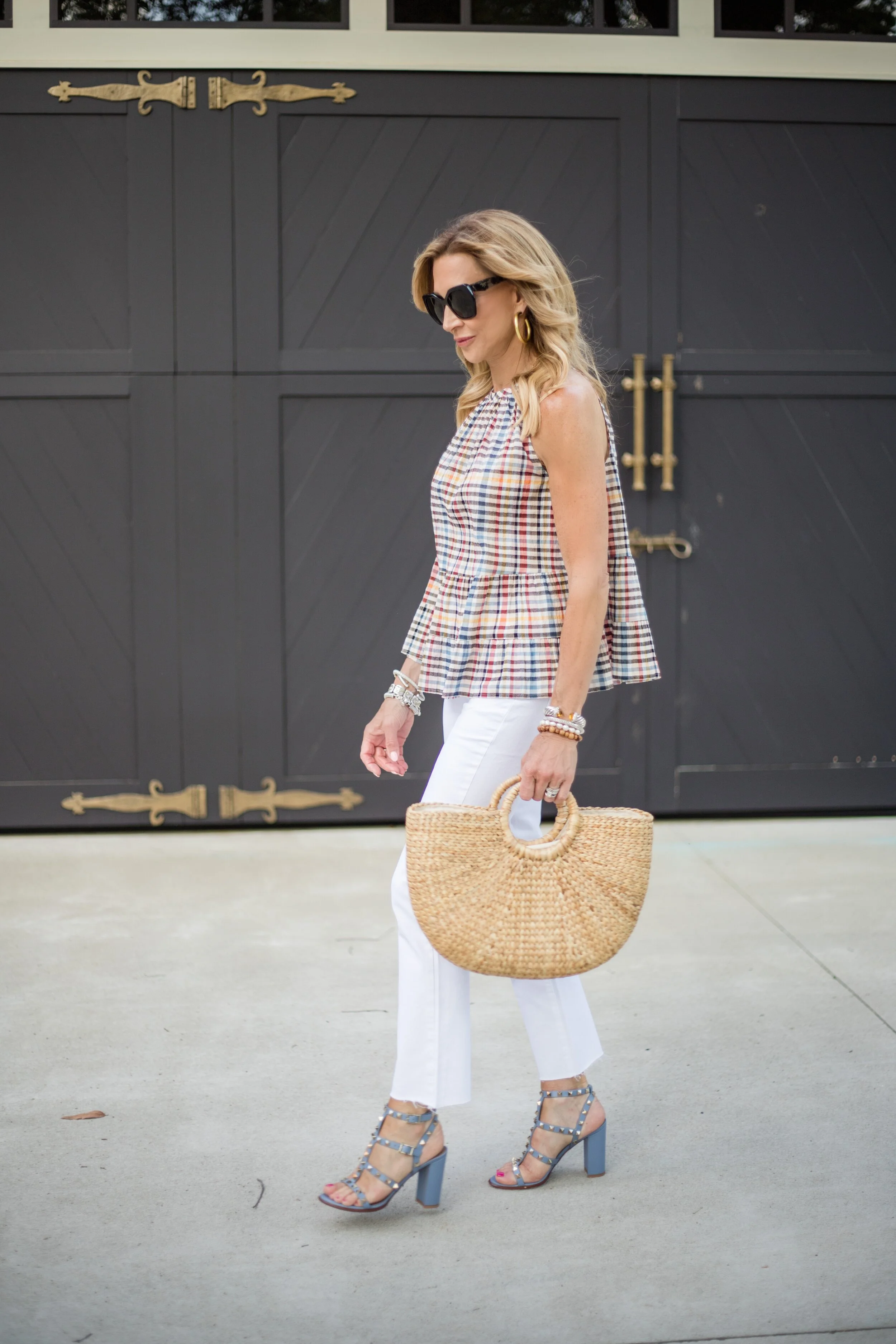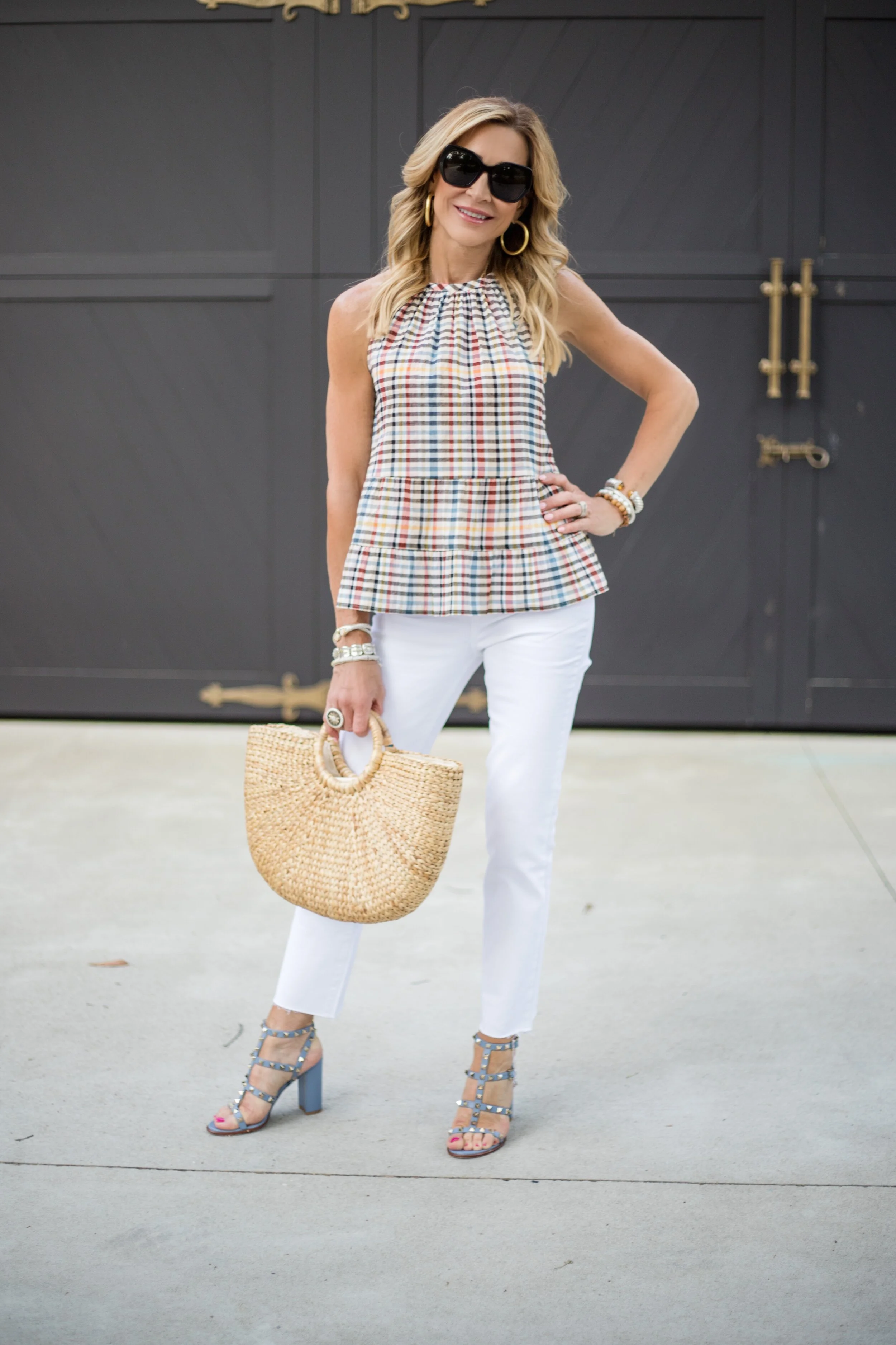 There are so many styles of jeans these days and more selections of white jeans than I can ever remember. This new pair I’m wearing is by Paige Denim and I found them while in Wilmington NC last week at Monkee’s (be sure to check out the website if you haven’t already). I love the length of these jeans as well as the mid rise waist. I paired them with my baby blue Valentino sandals (these are forever shoes) and a top from Loft…talk about high/low! That’s really the fun of getting dressed in my opinion…buying a few nice items that can mix and match with fun inexpensive pieces. Summer is the best time to play around with new styles without spending too much money. I’m sharing the details of my outfit as well as a few other things below. Please be sure to check back on tomorrow and Friday for a couple of special posts! Have the best day ever!