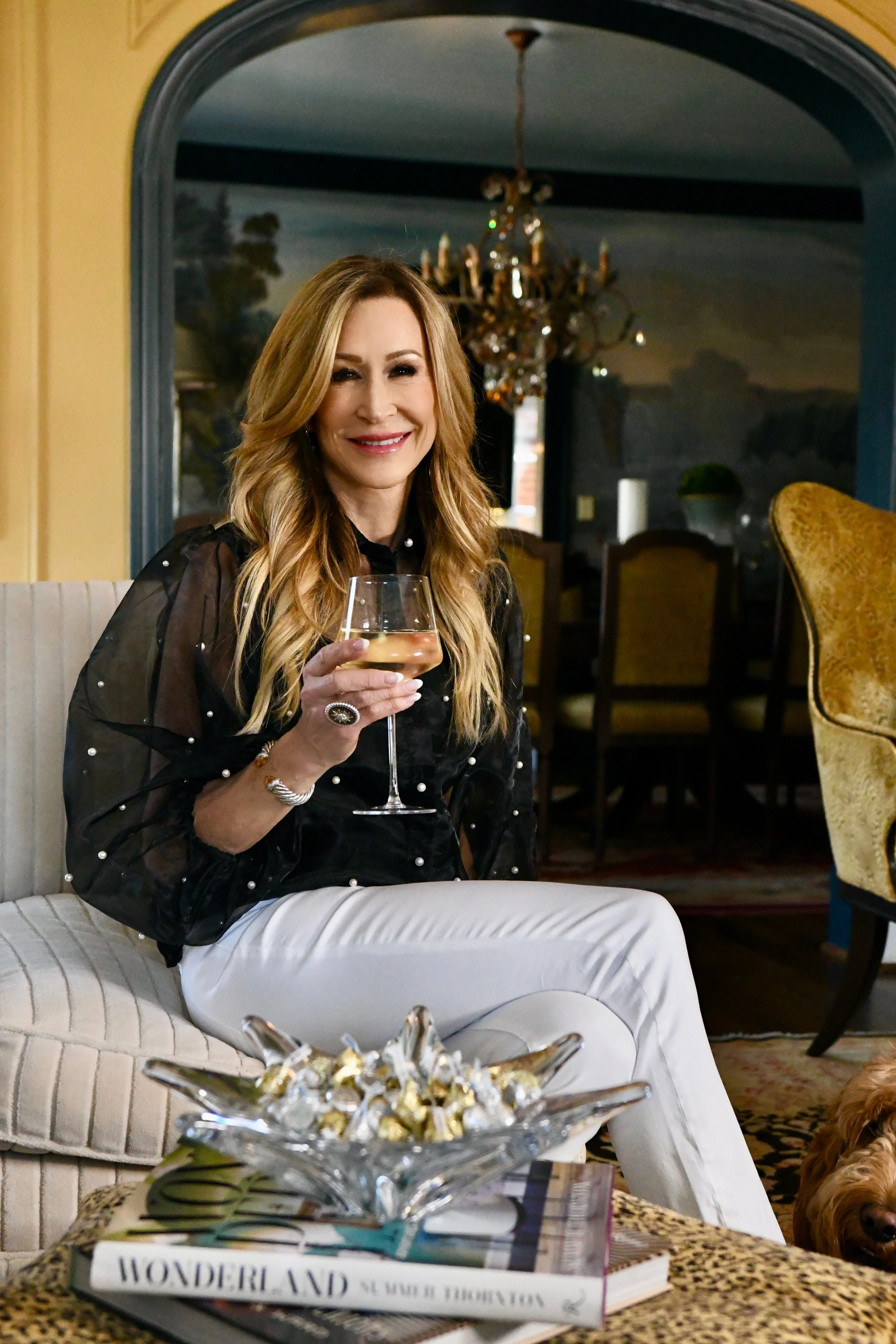 The sheer trend is huge this spring and the blouse I’m wearing here is a gorgeous, elegant example! Perfect for cocktails…this organza blouse features balloon sleeves and pearl detail. It comes with the separate silk cami underneath. White jeans and strappy sandals make this blouse ideal for cocktails at home, but it can easily be dressed up for a more formal occasion!