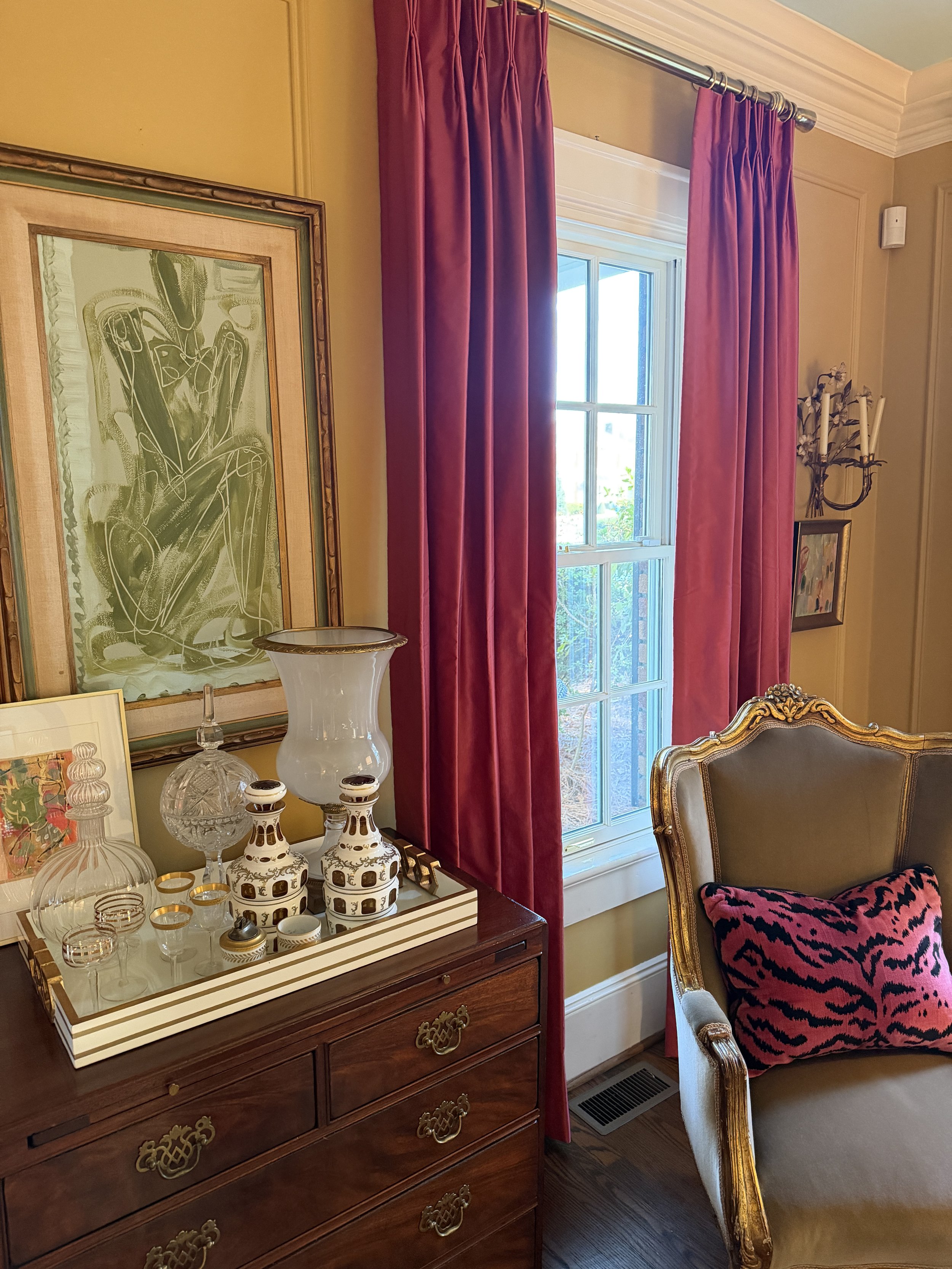 It seems that I just got the last of the straggling holiday decorations taken down. There is still a small pile of things in the basement waiting to be put away (things are getting tight down there) and I’m working on a few new projects. I’ve chosen new wallpaper to go in the hallway outside our bedroom and I’m looking at fabric for a new headboard to tie the rooms together. I also had new drapes hung in the living room (pictured below) last week. The den is getting a small facelift and I’m trying to pick out new wallpaper for the powder room. We’ve been in this house for nearly 22 years and it seems time for a refresh so I hope you’ll follow along as I’ve decided to record this all on YouTube!