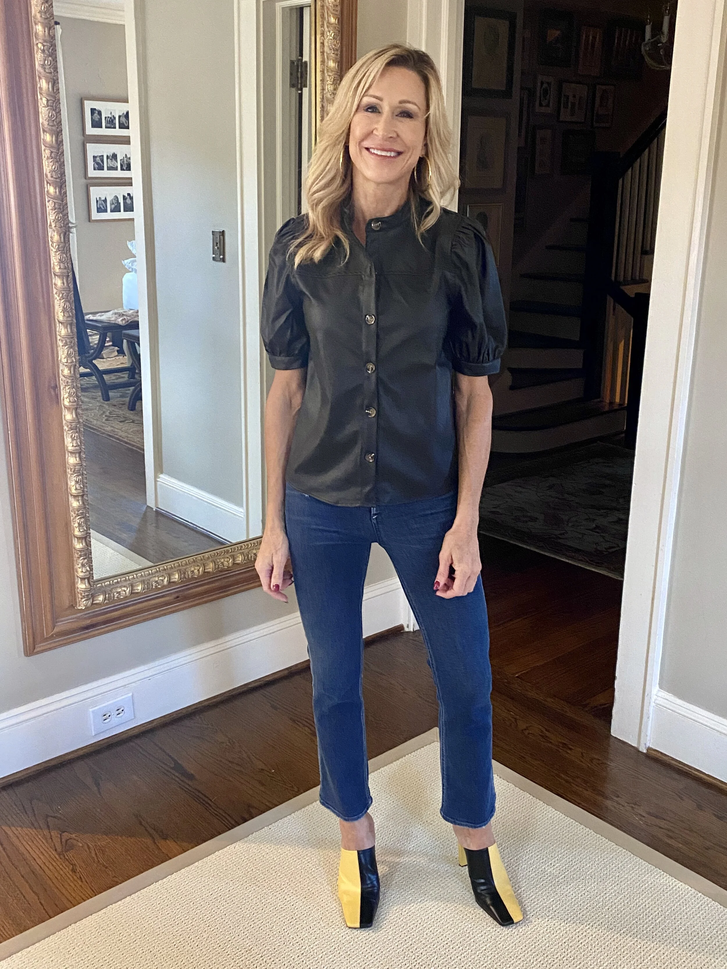 Great shoes from the Zara spring collection paired with dark wash cropped jeans and my favorite faux leather blouse from Target Who What Wear. Iβm linking similar mules, including a perfect pair from Tory Burch!