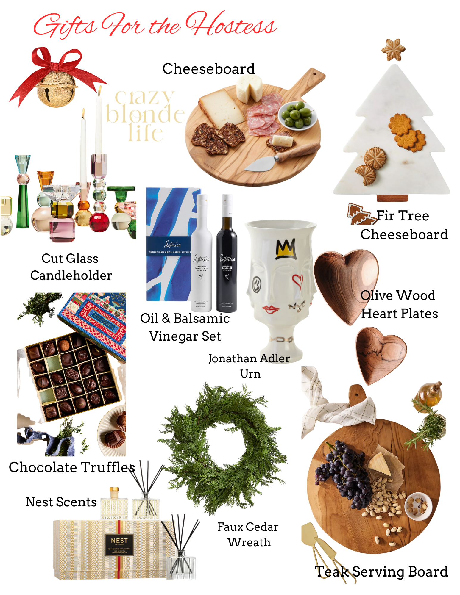 Hostess gifts are fun to give and to receive! Can you tell I love a good cheese board…there are three great ones on this list and in my opinion, you can never have too many! Chocolate is never a bad idea and everyone loves a candle! I love the Jonathan Adler Urn (for a very special friend) and the cut glass candlesticks have made several of my gift guides because they are truly so fabulous! The Olive Wood Heart Bowls are darling and so useful!