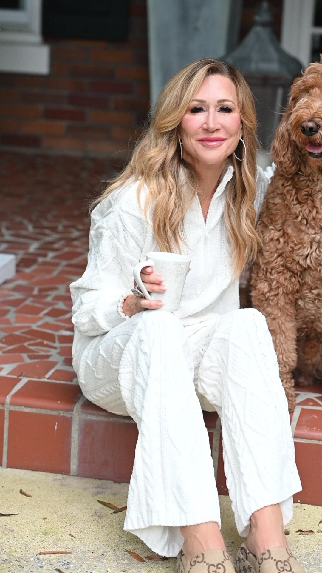 The cozy outfit Iβm wearing is from Boston Proper (only available in a pretty pink now) and I do truly love it! Itβs so soft and warm and perfect for chilly mornings and evenings by the fire! Can you tell that sitting by our outdoor fireplace is one of my favorite things in the world?